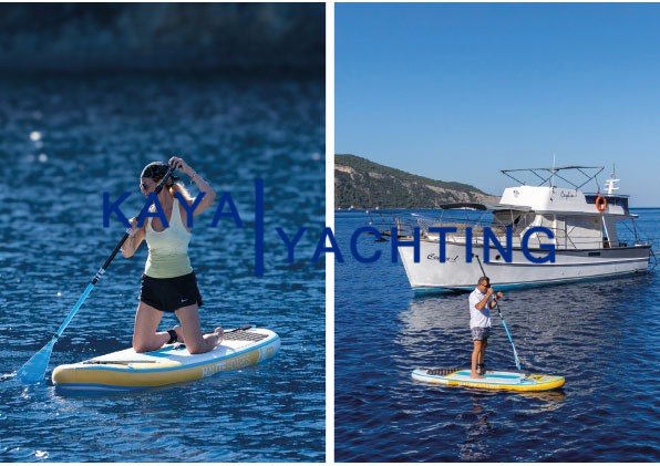 Integration with the Sea: For your swimming breaks, there is a wide platform and ladder at the stern of the boat to facilitate easy entry and exit to the sea . The boat also has water toys such as a paddleboard (SUP), offering different water sports experiences in addition to swimming , , .