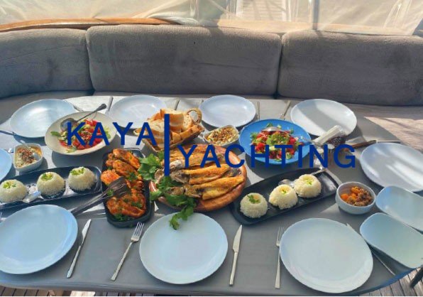During your private tour, your palate is as much a priority as your comfort. The private lunch [metin], included in the tour price, is served while anchored in a stunning, deep blue bay at the most beautiful time of the day. A rich menu, including cold appetizers, seasonal fruits, cheese, and charcuterie options, graces your table with an elegant presentation , , .