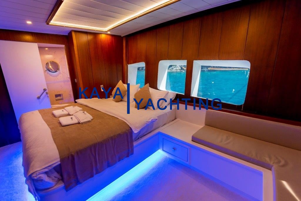 For those seeking much more than an ordinary holiday in the turquoise waters of the Aegean and Mediterranean, Gulet Buse By Frzi s a modern masterpiece launched in 2022. Built with the latest maritime technologies, contemporary architecture, and a design centered on guest comfort, this luxury gulet offers a "next-generation" holiday experience to blue cruise enthusiasts. This brand-new boat awaits you to provide the comfort of a 5-star hotel in the middle of the sea by combining the warmth of wood with the spaciousness of modern luxury.