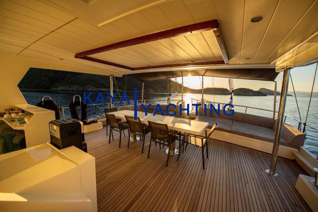 Gulet Buse By Frz departs from the traditional gulet structure and offers its guests much wider and functional living spaces. One of the most striking features of the boat is undoubtedly the Flybridge (upper deck) area.