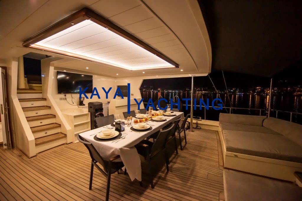 Flybridge Pleasure: Commanding a 360-degree panoramic sea view, this area is the boat's most popular spot not only for sunbathing but also for evening cocktails and chatting under the stars.