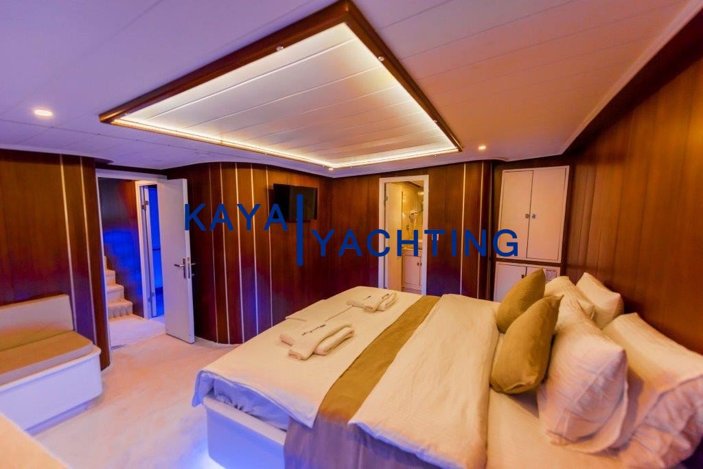 The most important complement to a luxury boat is impeccable service. On Gulet Buse By Frz, a professional crew of 4 experts in their fields is on duty. Consisting of a captain, chef, and service staff, this team meets every need from meal service to cleaning, route planning to water sports assistance throughout your holiday. Our crew stays in their own separate living quarters, paying maximum attention to guest privacy.