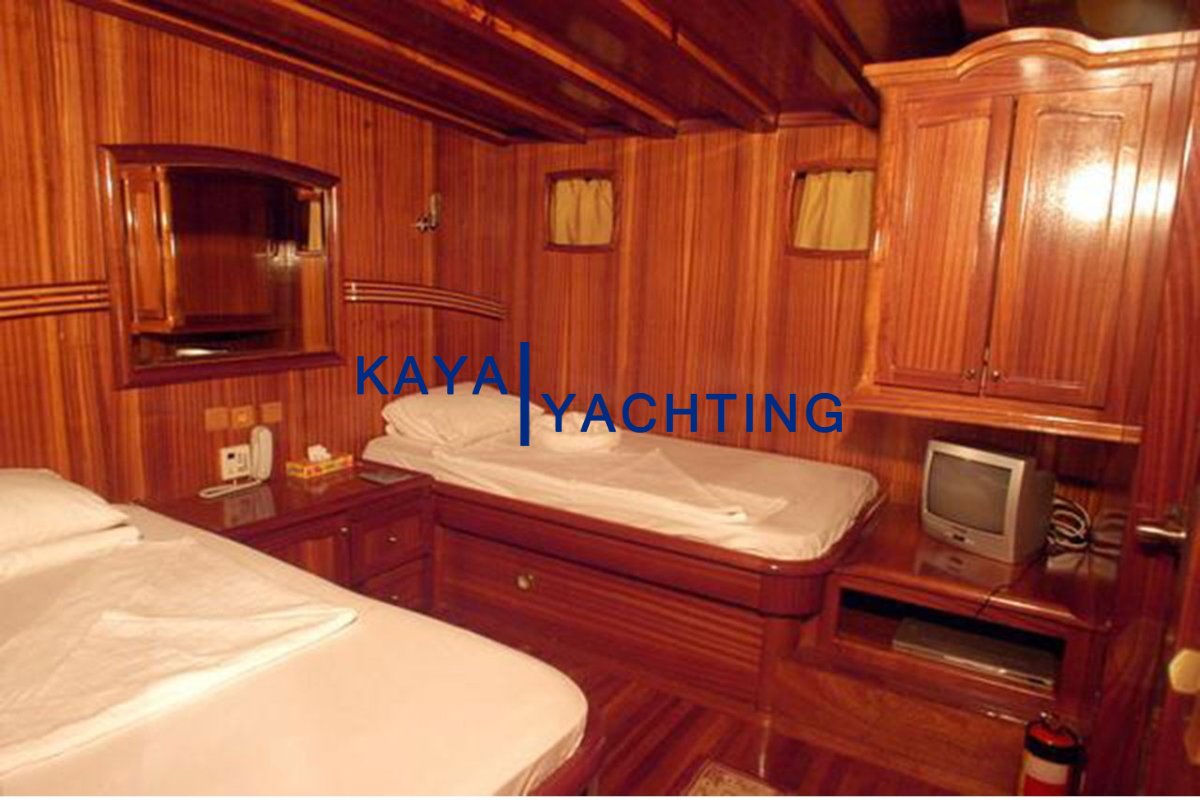 7 Double Cabins: Our boat consists of 7 comfortable cabins, all equipped with double beds. This equal cabin distribution makes accommodation arrangement within the group extremely easy.