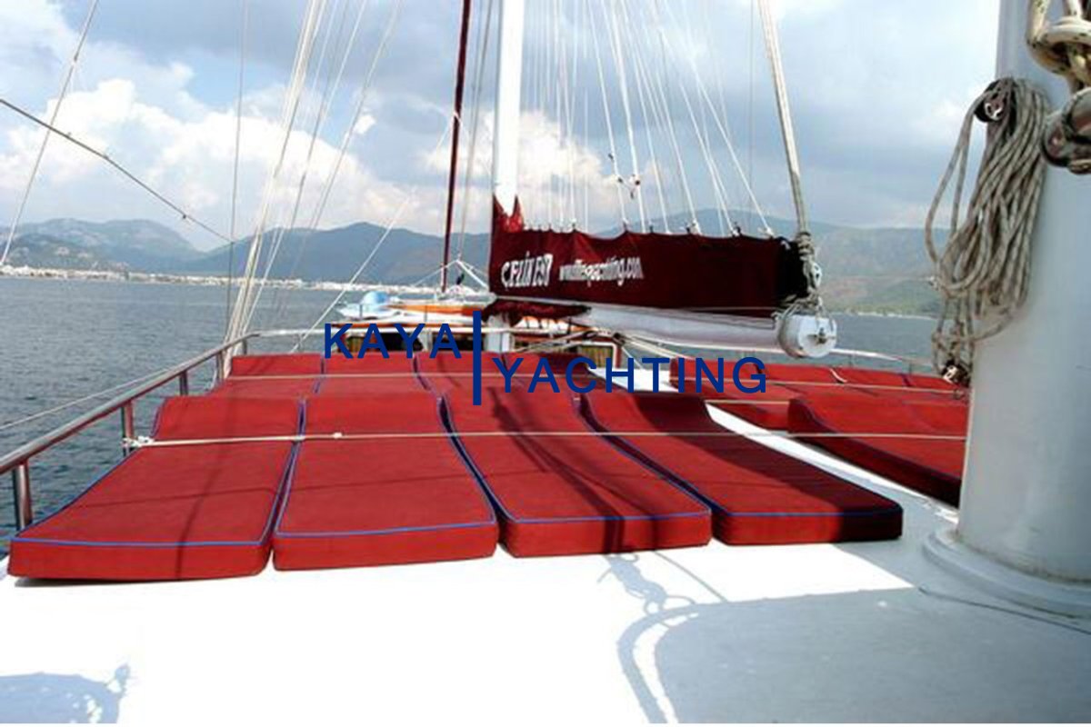 Book your place with Çelik Es D Gulet now to experience luxury, comfort, and professional service together in the unique bays of Marmaris with your loved ones. This massive 32-meter gulet is the right address for you to collect unforgettable memories among Bozburun gulet charter options.