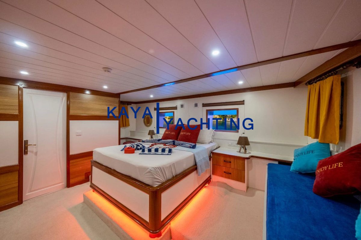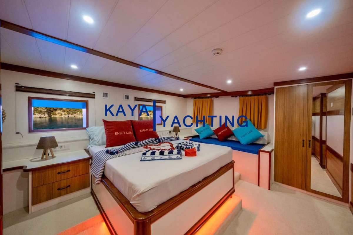 The Fethiye Göcek region, with its enchanting pristine bays and crystal-clear waters, is a favorite of the world's jet set and blue cruise enthusiasts. For those seeking luxury, comfort, and flawless service combined in this unique geography, Enjoy life Gulet is the perfect answer. This elegant gulet, completed and launched in 2019, offers its guests all the privileges of the Luxury Gulet class with its 24-meter length and 7-meter beam.