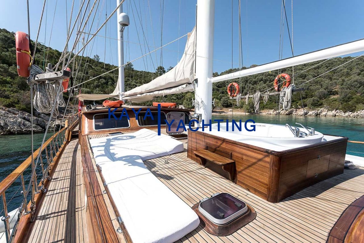 Jacuzzi Delight: The Jacuzzi on the foredeck is the yacht's most special and "Instagrammable" spot for a bubbly relaxation against the sunset or enjoyable moments under the stars.