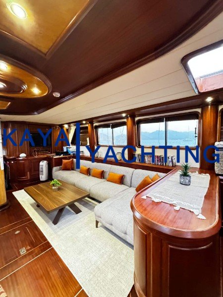 Indoor Saloon Comfort: The stylishly designed saloon features a large table for indoor dining on windy days, comfortable seating areas, and TV, DVD, and music systems. This area ensures you don't compromise your comfort even on cool or rainy days.