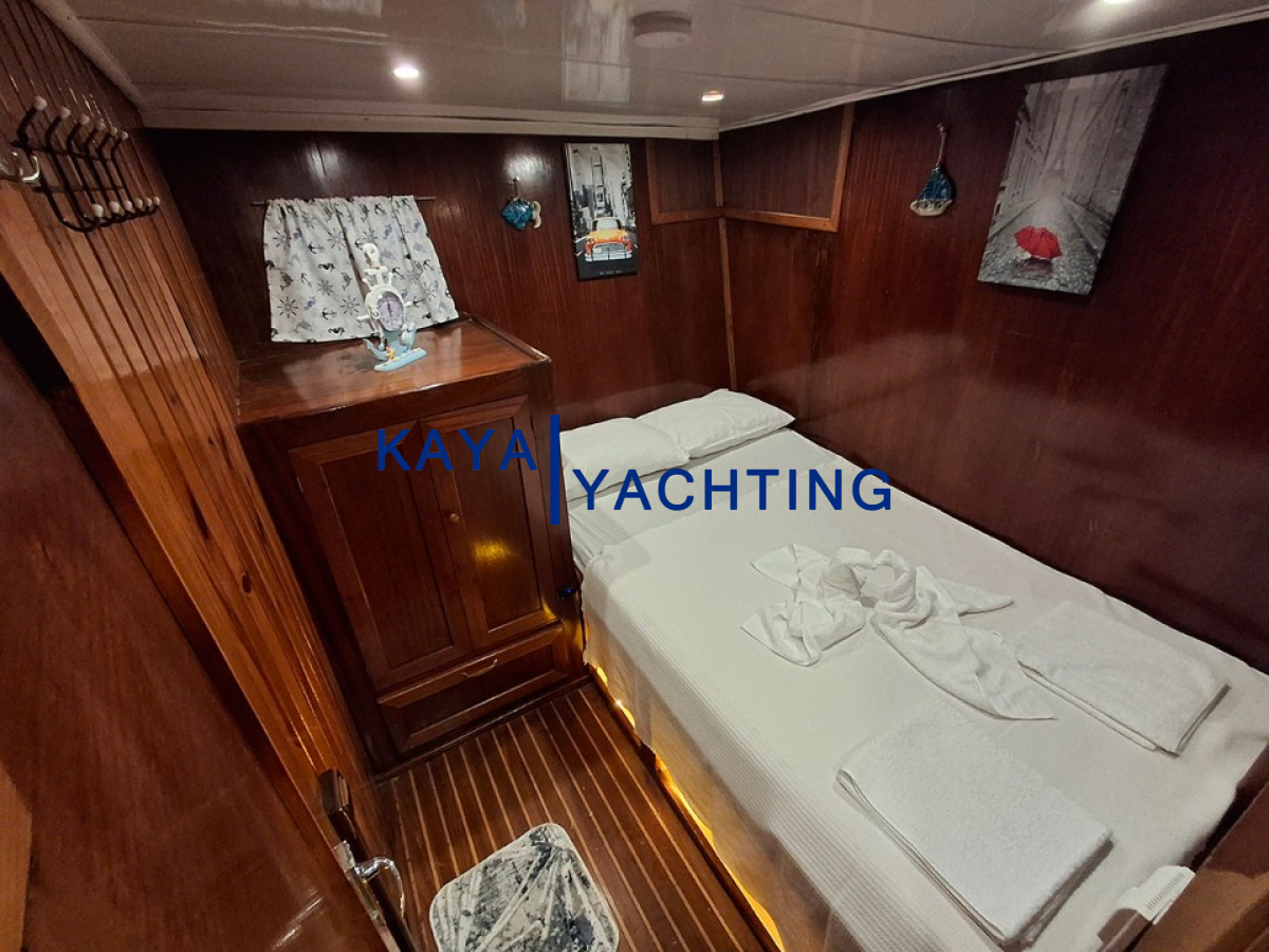 Guletin teknik özellikleri de yolculuğunuzun sorunsuz ve keyifli geçmesi için özenle seçilmiştir. SYLVIA, güçlü 220 beygir gücünde bir motor ve 28 kW jeneratör ile donatılmıştır. Bu sayede, seyir halindeyken bile tüm elektriksel ihtiyaçlarınız karşılanır ve kesintisiz bir enerji akışı sağlanır. Guletin sağlam yapısı ve modern ekipmanları, Göcek'in sakin sularında güvenli ve huzurlu bir seyir imkanı sunar.