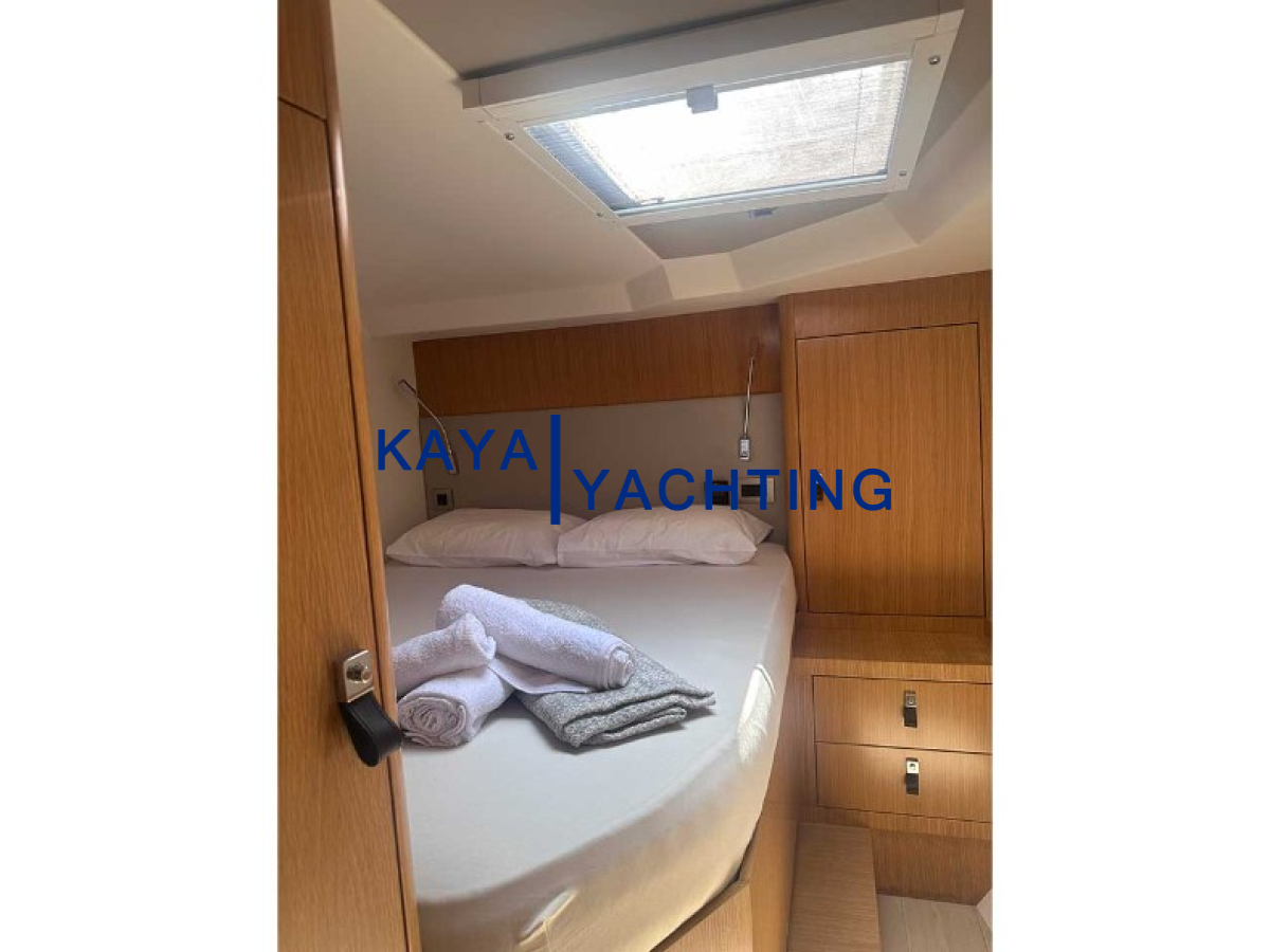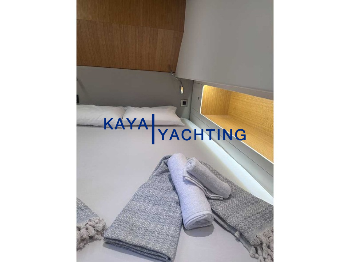 Fly43, misafirlerine ev konforunda bir konaklama deneyimi sunan şık ve rahat kamaralara sahiptir. Tekne tarzı ahşap işçiliği ve laminant zeminler, iç mekanlara sıcak ve davetkar bir ambiyans katıyor. Kıç kamaralarda çift kişilik yataklar, geniş depolama alanları ve lumbozlar aracılığıyla mükemmel havalandırma bulunur. Bu kamaralar, denizden gelen esintilerle ferah ve huzurlu bir uyku deneyimi sunar. İleri kamaralar da çift kişilik yataklar ve ek depolama alanlarıyla donatılmıştır, bu da tüm misafirler için yeterli yer ve konfor sağlar. Kamaralar arasında paylaşılan banyo alanı, lavabo, duş ve elektrikli deniz tuvaleti gibi modern olanaklarla eksiksiz bir şekilde donatılmıştır. Her bir kabin, denizde geçirilen uzun günlerin ardından rahatlama ve yenilenme imkanı sunar.