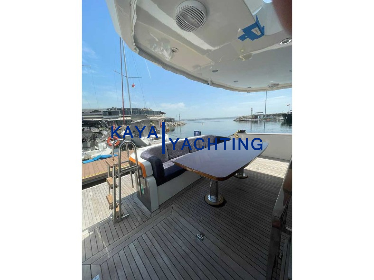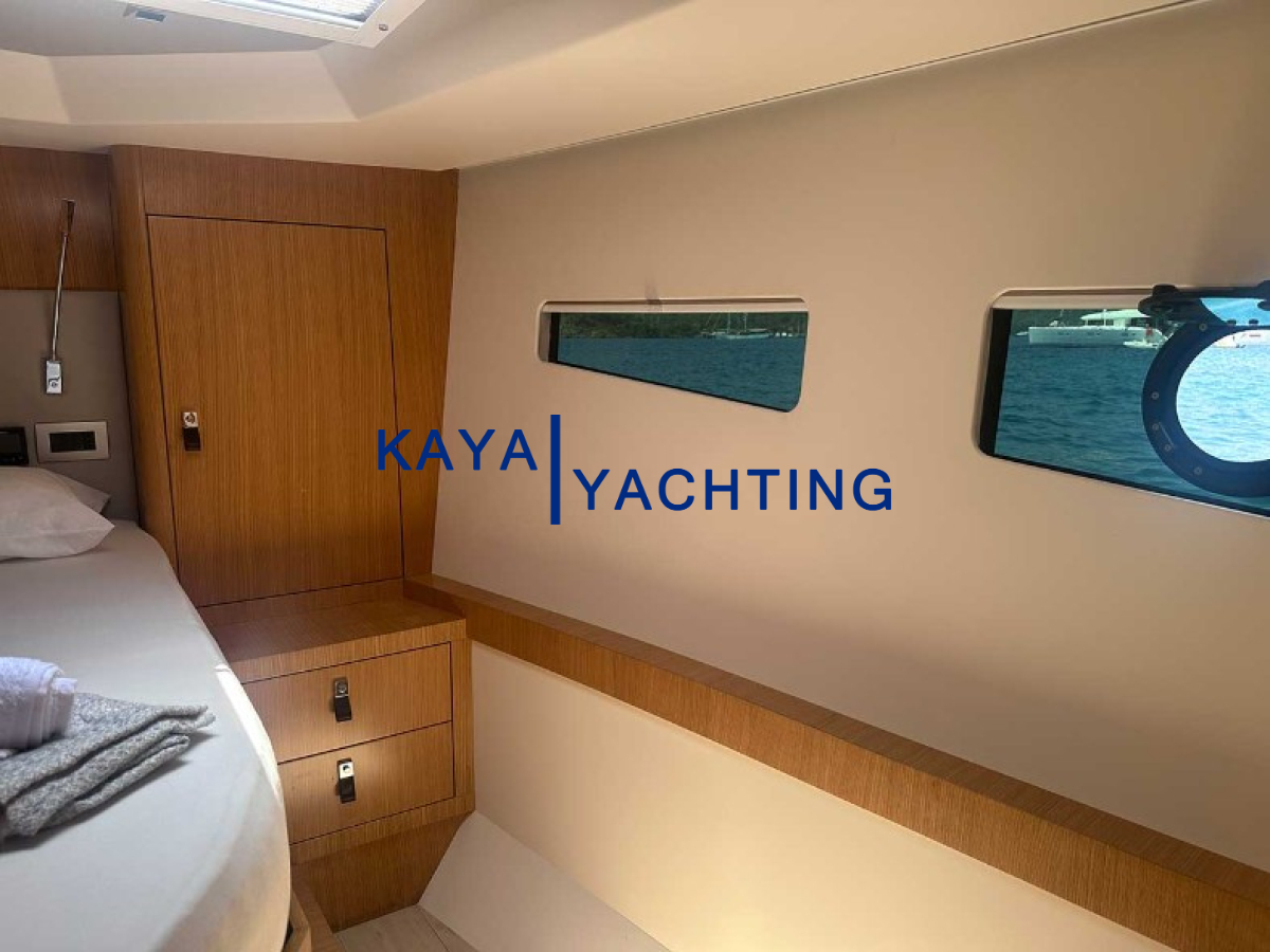 Teknenin dış yaşam alanları da aynı özenle tasarlanmıştır. Geniş kokpit alanı, güneşlenme yatağına dönüştürülebilen büyük bir bank ile donatılmıştır, bu da güverte üzerindeki zamanınızı daha da keyifli hale getirir. Kıç platformda yer alan yüzme merdiveni ve duş, serinletici deniz molaları için pratik çözümler sunar.