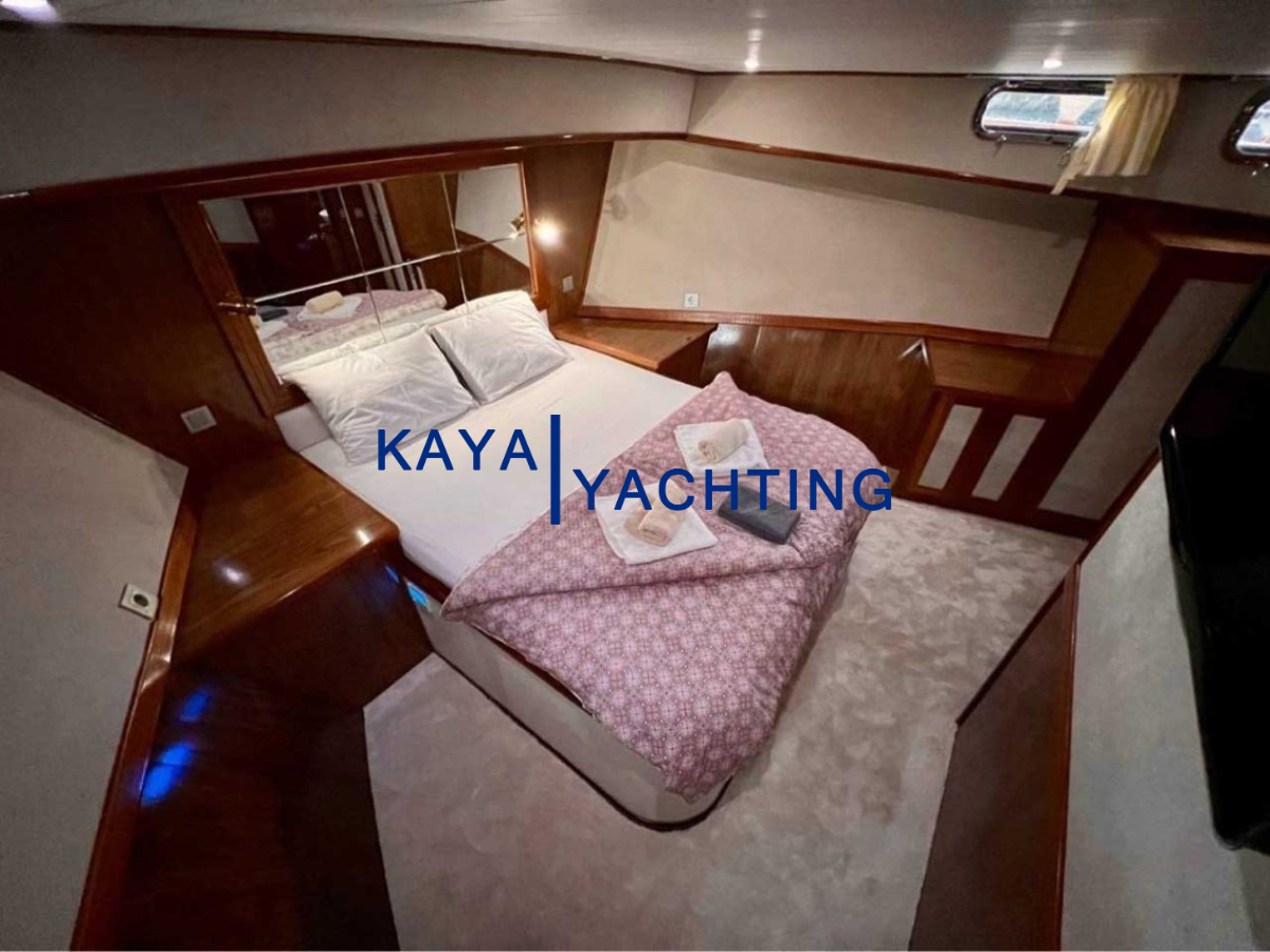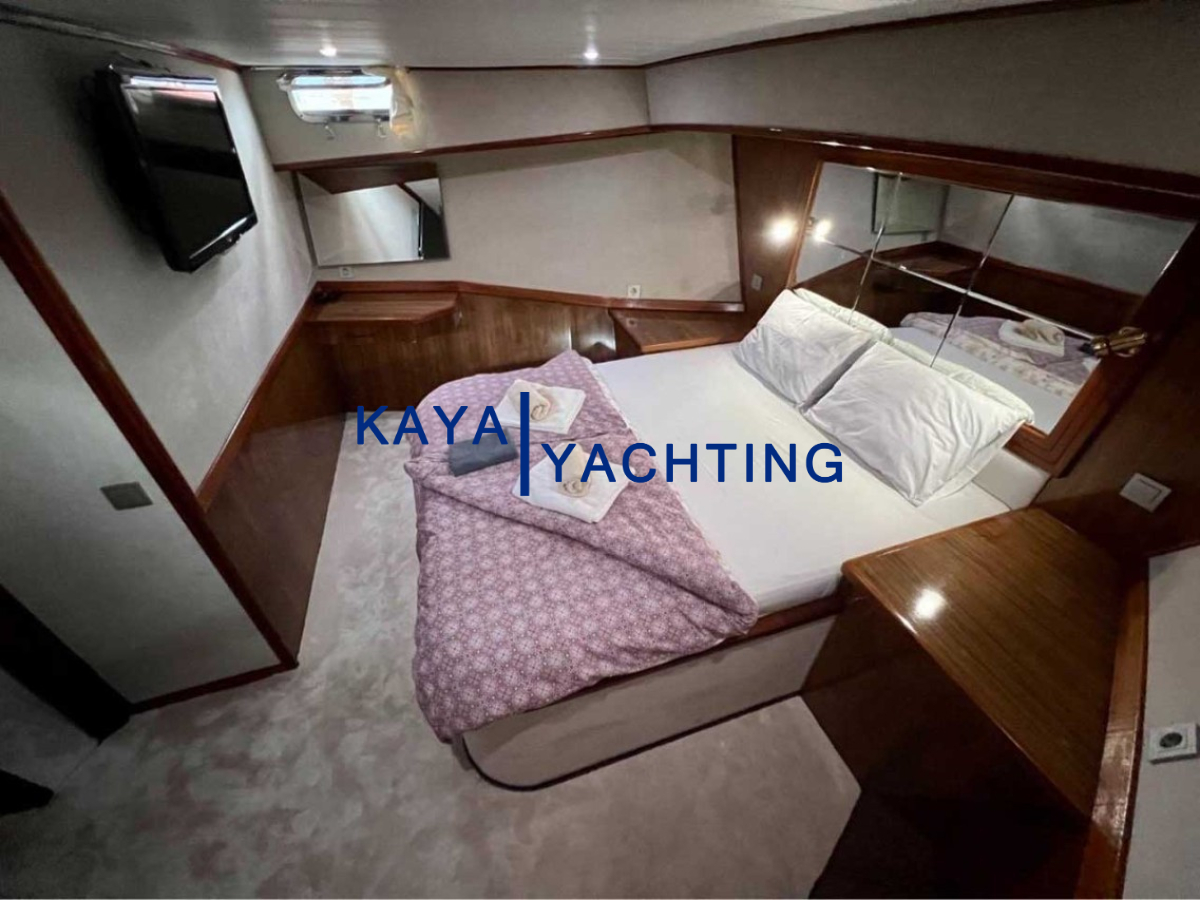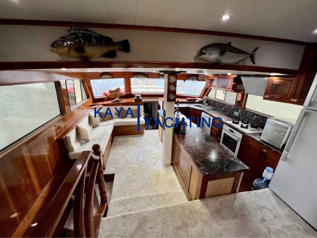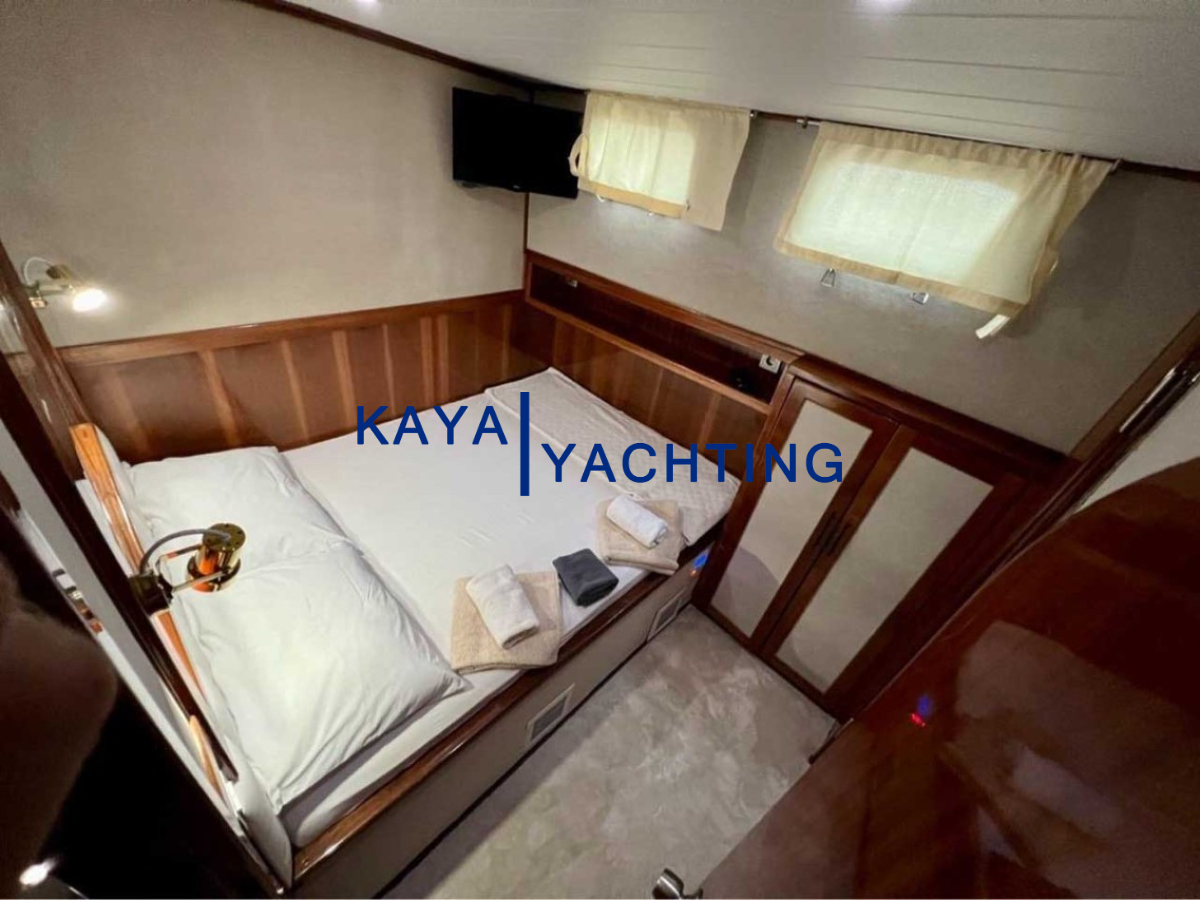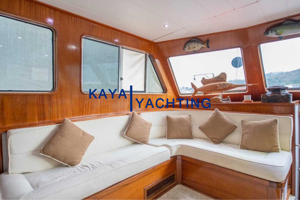 Afilli'nin en dikkat çekici özelliklerinden biri, teknenin kıç kısmında yer alan geniş oturma alanı ve güneşlenme teraslarıdır. Burada, gün batımını izlerken veya yıldızların altında keyifli sohbetler ederken eşsiz bir atmosferin tadını çıkarabilirsiniz. Geniş minderli alanlar, güneşlenmek isteyenler için ideal bir ortam sunarken, gölgelik alanlar da serinlemek isteyen misafirler düşünülerek tasarlanmıştır. Bu alanlar, özellikle akşam yemekleri ve özel kutlamalar için mükemmel bir buluşma noktasıdır. Misafirlerimiz, burada lezzetli yemeklerin ve serinletici içeceklerin tadını çıkarırken, bir yandan da Akdeniz'in huzurlu esintisini hissedebilirler.