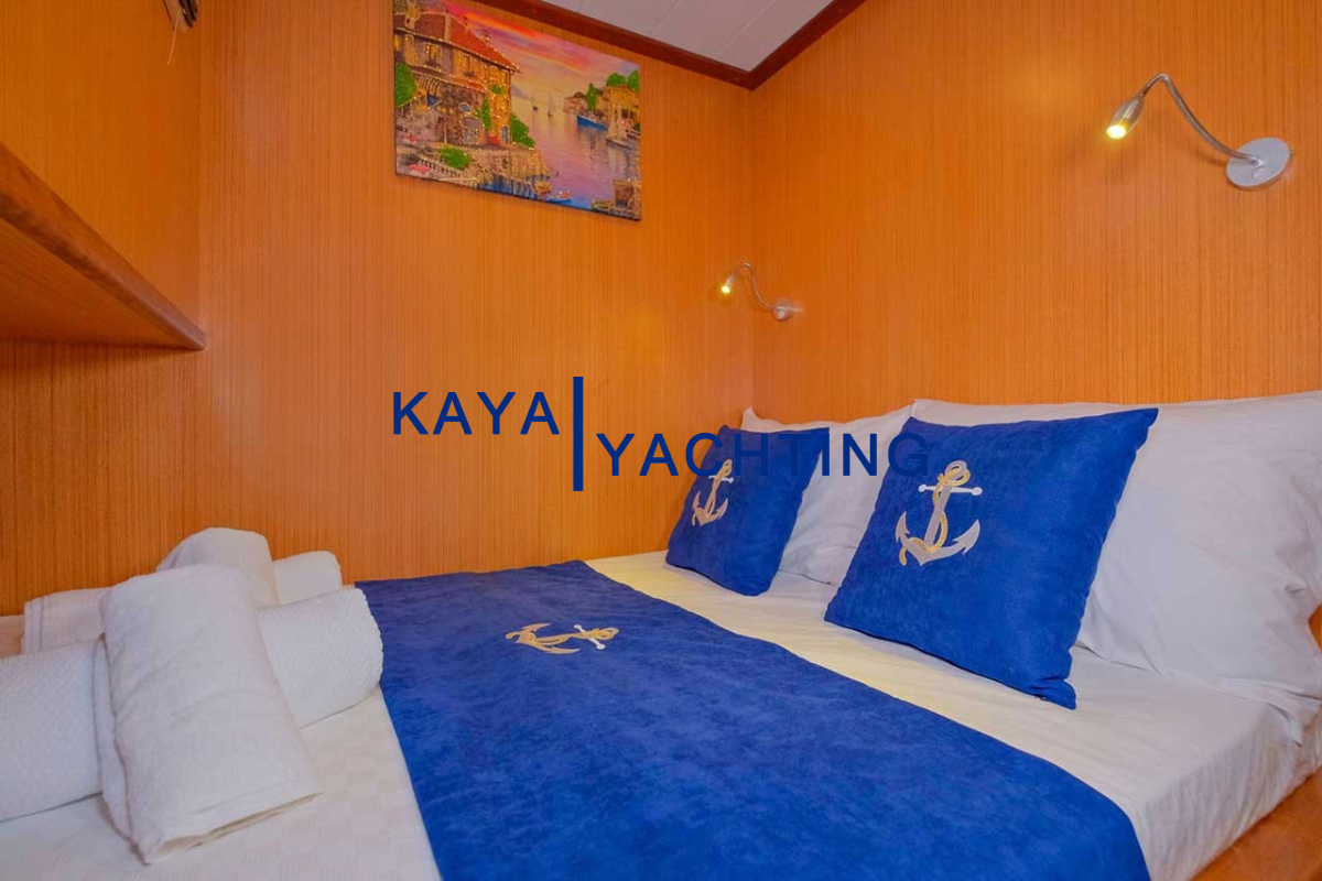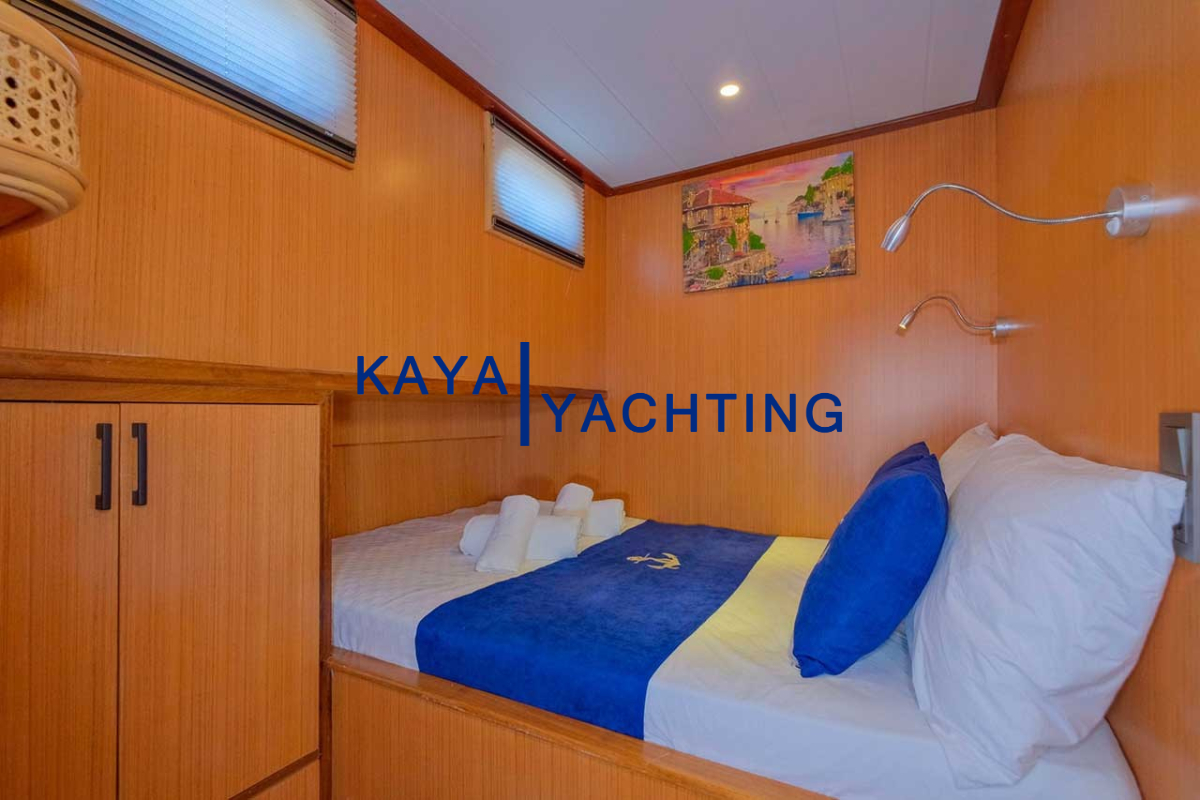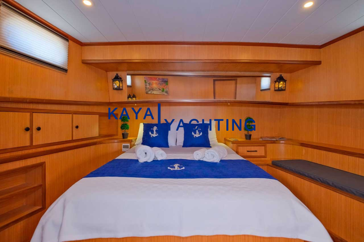 Gulet Anes, misafirlerinin konforu ve mahremiyeti düşünülerek özenle tasarlanmıştır. Toplam 3 kabin ve 4 banyoya sahip olan guletimiz, aileler ve küçük arkadaş grupları için ideal bir yaşam alanı sunar. Kabin düzeni, 1 master kabin ve 2 double kabin şeklinde olup, her bir misafirin kişisel alanına özen gösterilmiştir. Maksimum 6 kişiye kadar konaklama imkânı sunan Anes, geniş ve ferah kabinleriyle kendinizi evinizde hissetmenizi sağlar. Deniz ve doğanın tadını çıkarırken rahatınızdan ödün vermeyeceğiniz bu özel mekânlar, modern ve şık bir tasarıma sahiptir. Her kabinde bulunan özel banyolar, hijyen ve mahremiyet konusunda üst düzey bir deneyim sunarak tatilinizin her anını keyifli hale getirir.