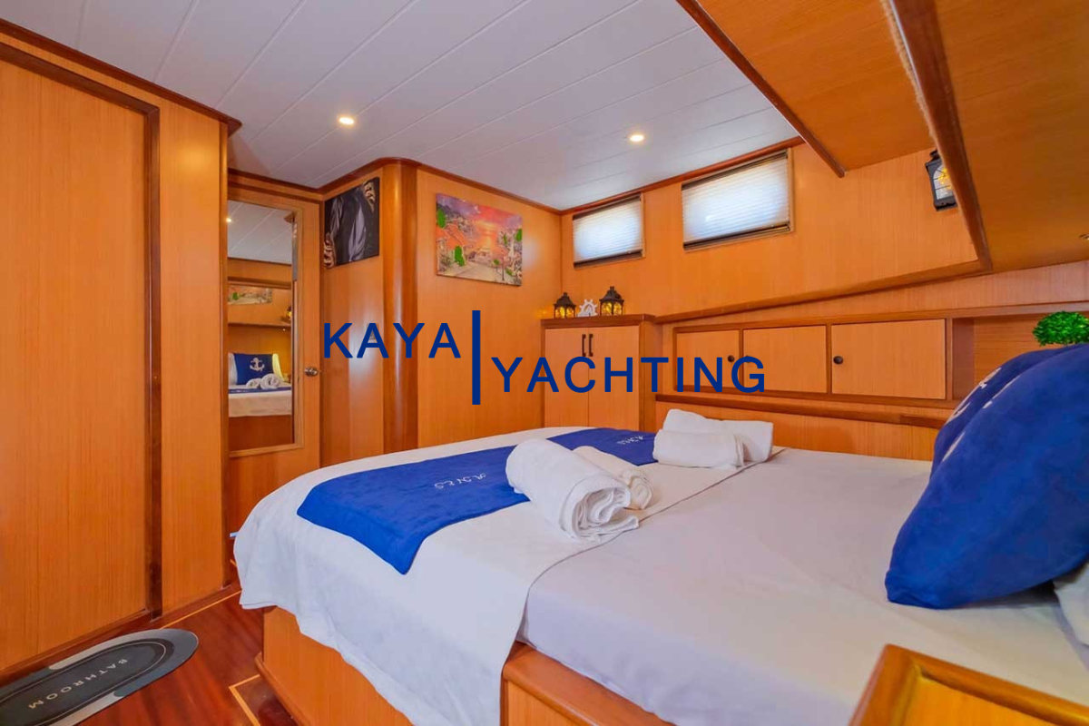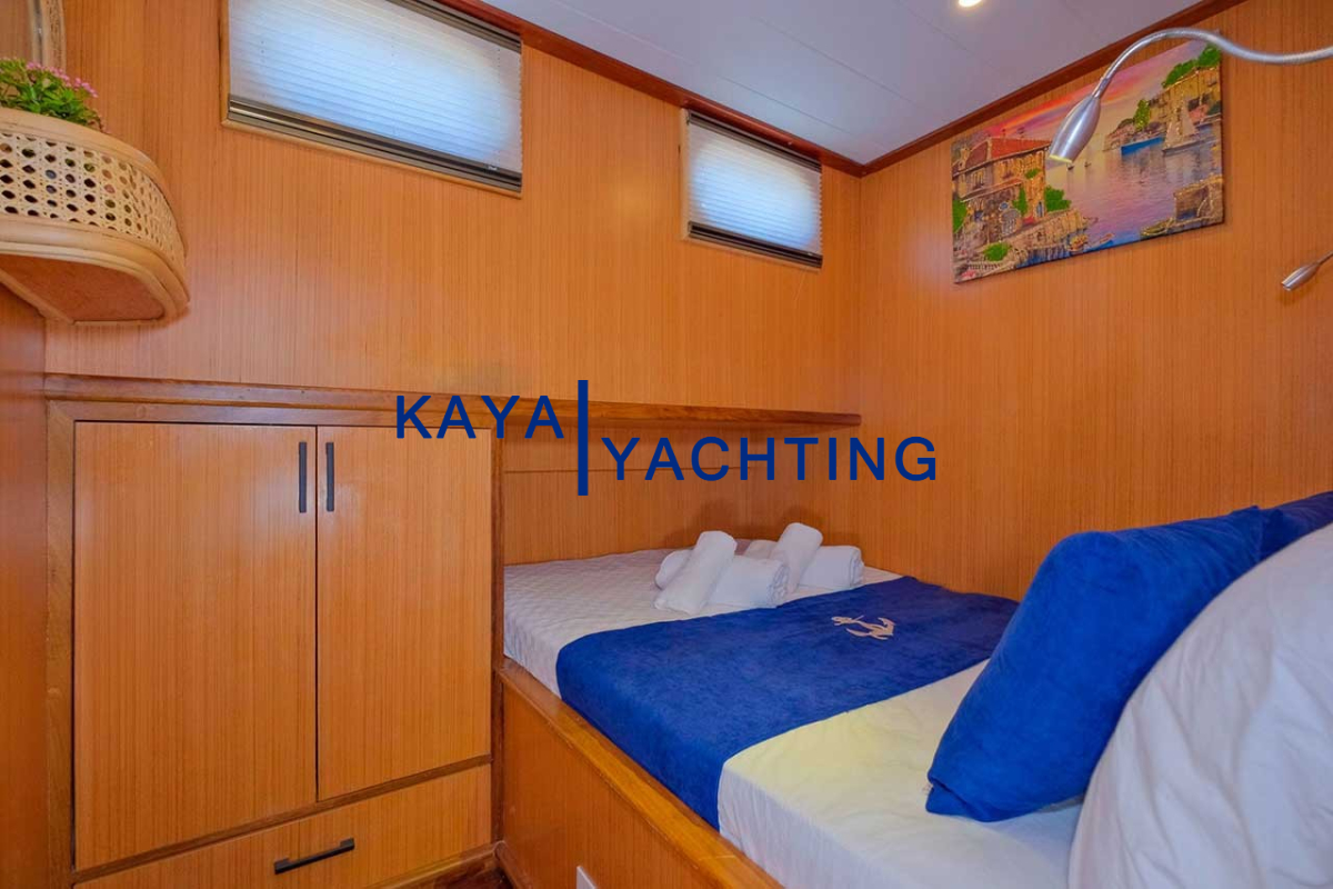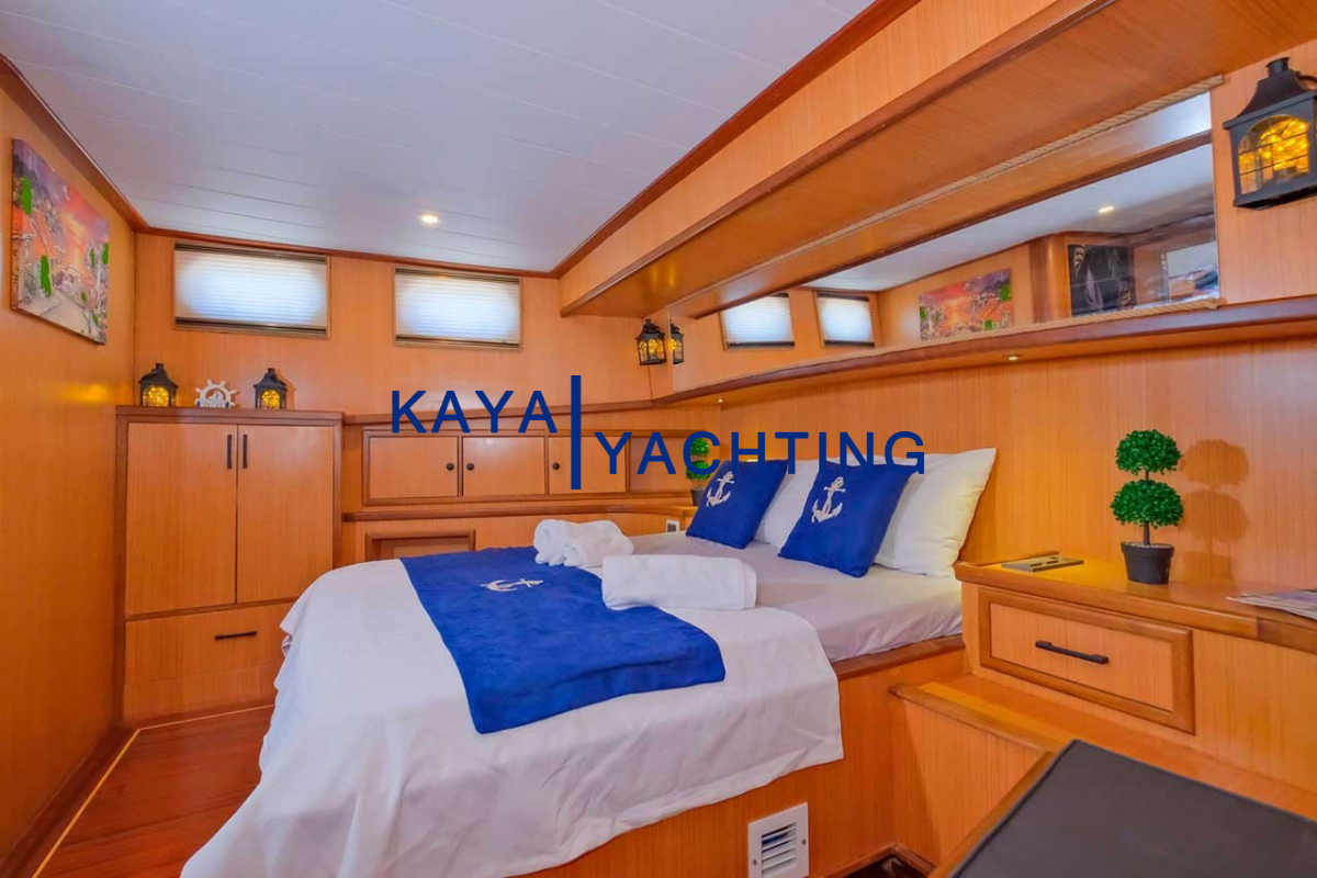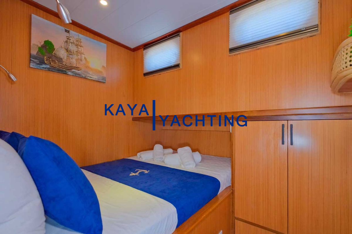 Gulet Anes, misafirlerinin konforu ve mahremiyeti düşünülerek özenle tasarlanmıştır. Toplam 3 kabin ve 4 banyoya sahip olan guletimiz, aileler ve küçük arkadaş grupları için ideal bir yaşam alanı sunar. Kabin düzeni, 1 master kabin ve 2 double kabin şeklinde olup, her bir misafirin kişisel alanına özen gösterilmiştir. Maksimum 6 kişiye kadar konaklama imkânı sunan Anes, geniş ve ferah kabinleriyle kendinizi evinizde hissetmenizi sağlar. Deniz ve doğanın tadını çıkarırken rahatınızdan ödün vermeyeceğiniz bu özel mekânlar, modern ve şık bir tasarıma sahiptir. Her kabinde bulunan özel banyolar, hijyen ve mahremiyet konusunda üst düzey bir deneyim sunarak tatilinizin her anını keyifli hale getirir.