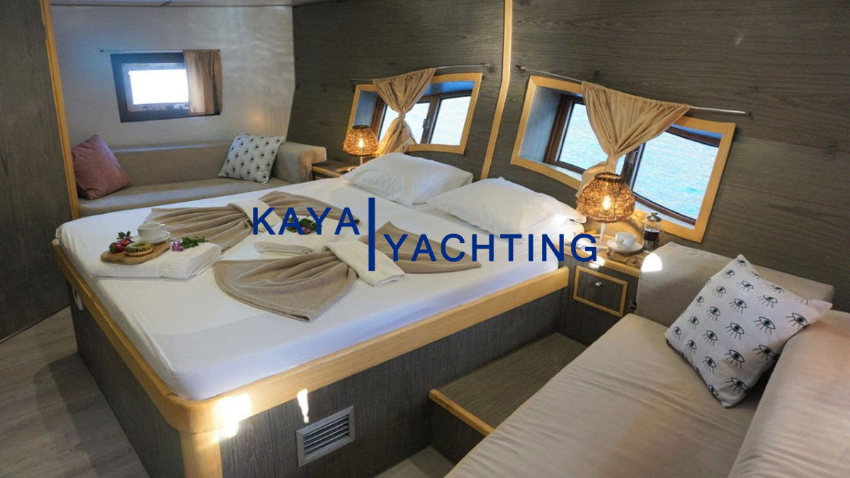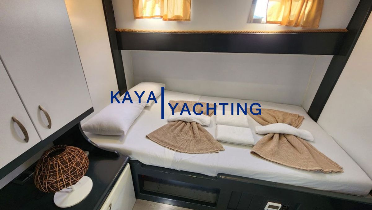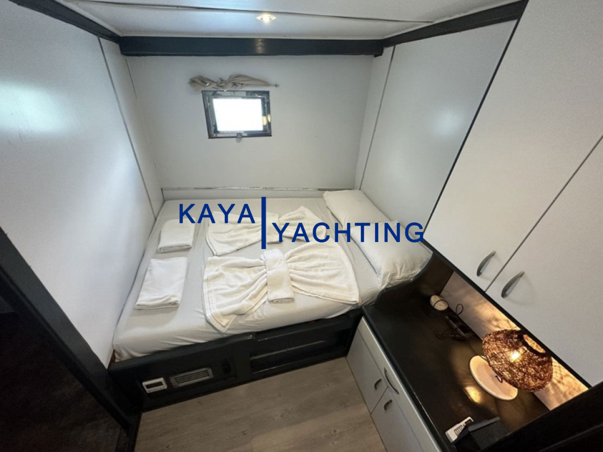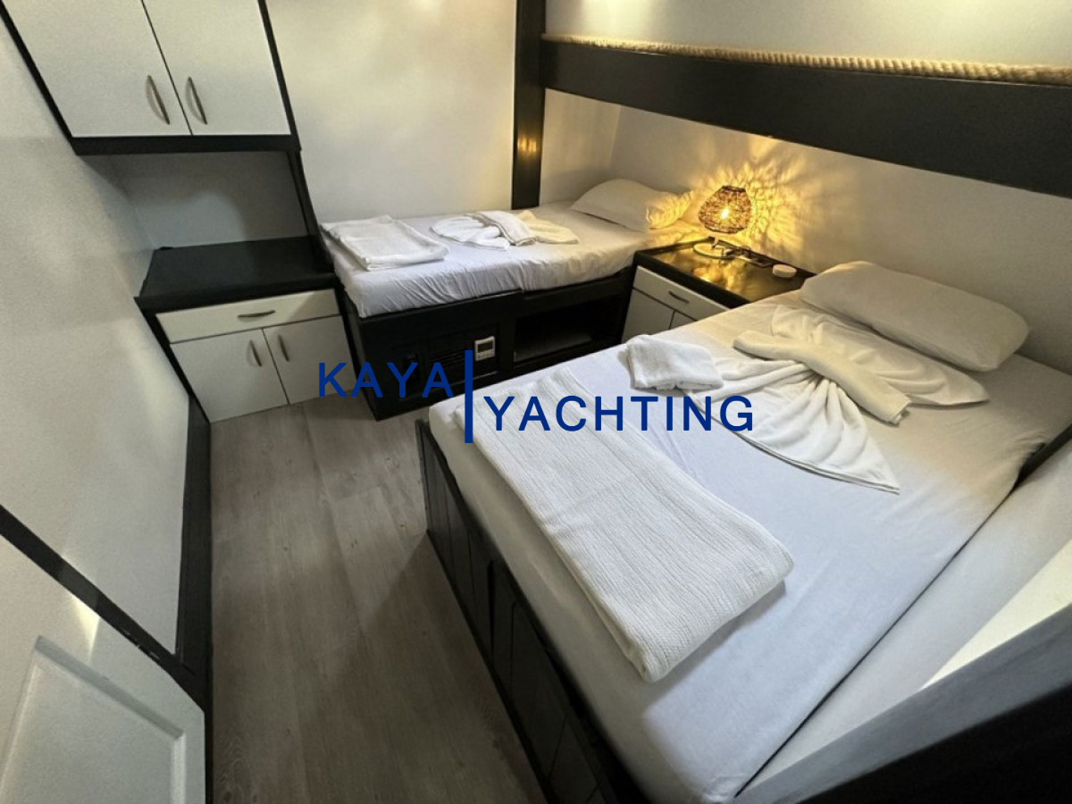 27 metre uzunluğundaki Aria Gulet, geniş ve ferah yapısıyla misafirlerine evlerinin konforunu aratmayacak bir ortam sunar. Toplam 6 kabini ile 12 kişiye kadar misafir ağırlama kapasitesine sahip olan guletimiz, büyük aileler veya arkadaş grupları için mükemmel bir seçimdir. Her kabinde özel duş ve WC bulunması, mahremiyet ve rahatlık açısından büyük bir avantaj sağlar. Geceleri ise kesintisiz klima hizmeti sayesinde Fethiye'nin sıcak yaz akşamlarında bile serin ve huzurlu bir uyku çekebilirsiniz. Aria Gulet, misafirlerinin konforunu en üst düzeyde tutmak için her detayı düşünerek tasarlanmıştır.