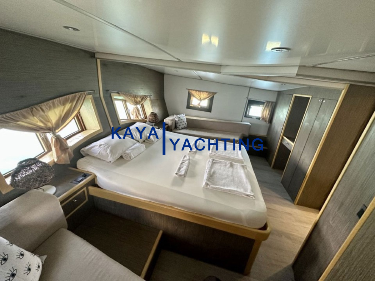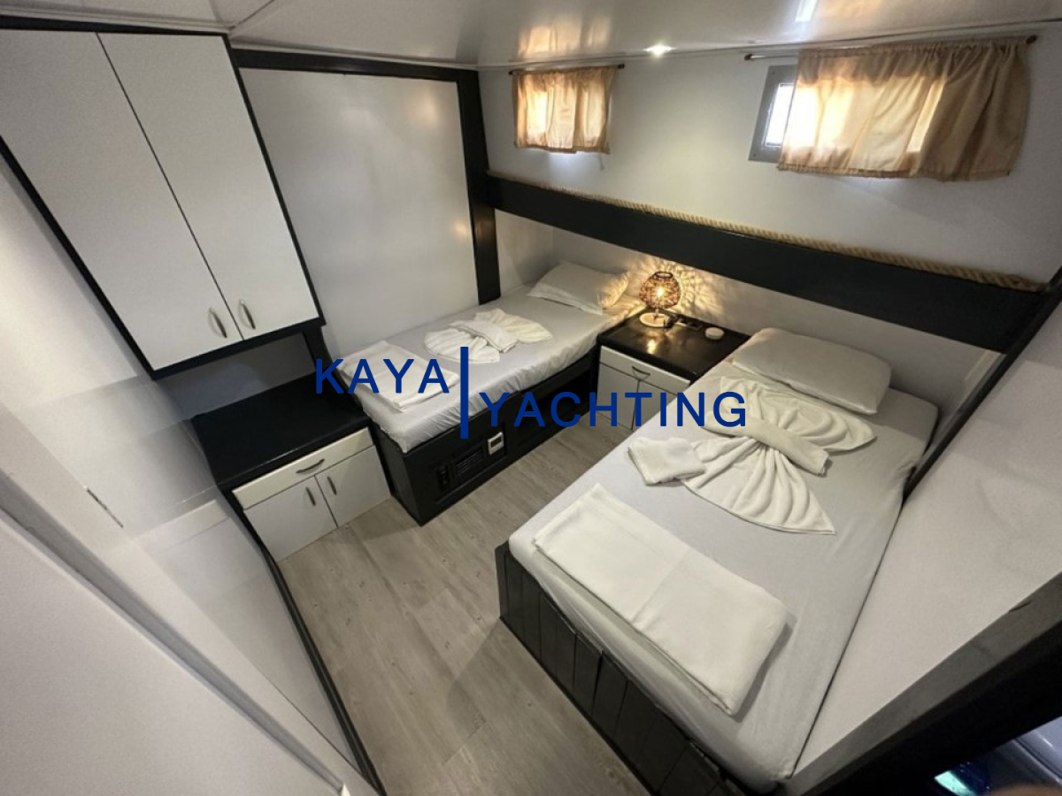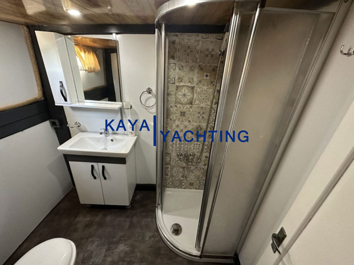 27 metre uzunluğundaki Aria Gulet, geniş ve ferah yapısıyla misafirlerine evlerinin konforunu aratmayacak bir ortam sunar. Toplam 6 kabini ile 12 kişiye kadar misafir ağırlama kapasitesine sahip olan guletimiz, büyük aileler veya arkadaş grupları için mükemmel bir seçimdir. Her kabinde özel duş ve WC bulunması, mahremiyet ve rahatlık açısından büyük bir avantaj sağlar. Geceleri ise kesintisiz klima hizmeti sayesinde Fethiye'nin sıcak yaz akşamlarında bile serin ve huzurlu bir uyku çekebilirsiniz. Aria Gulet, misafirlerinin konforunu en üst düzeyde tutmak için her detayı düşünerek tasarlanmıştır.