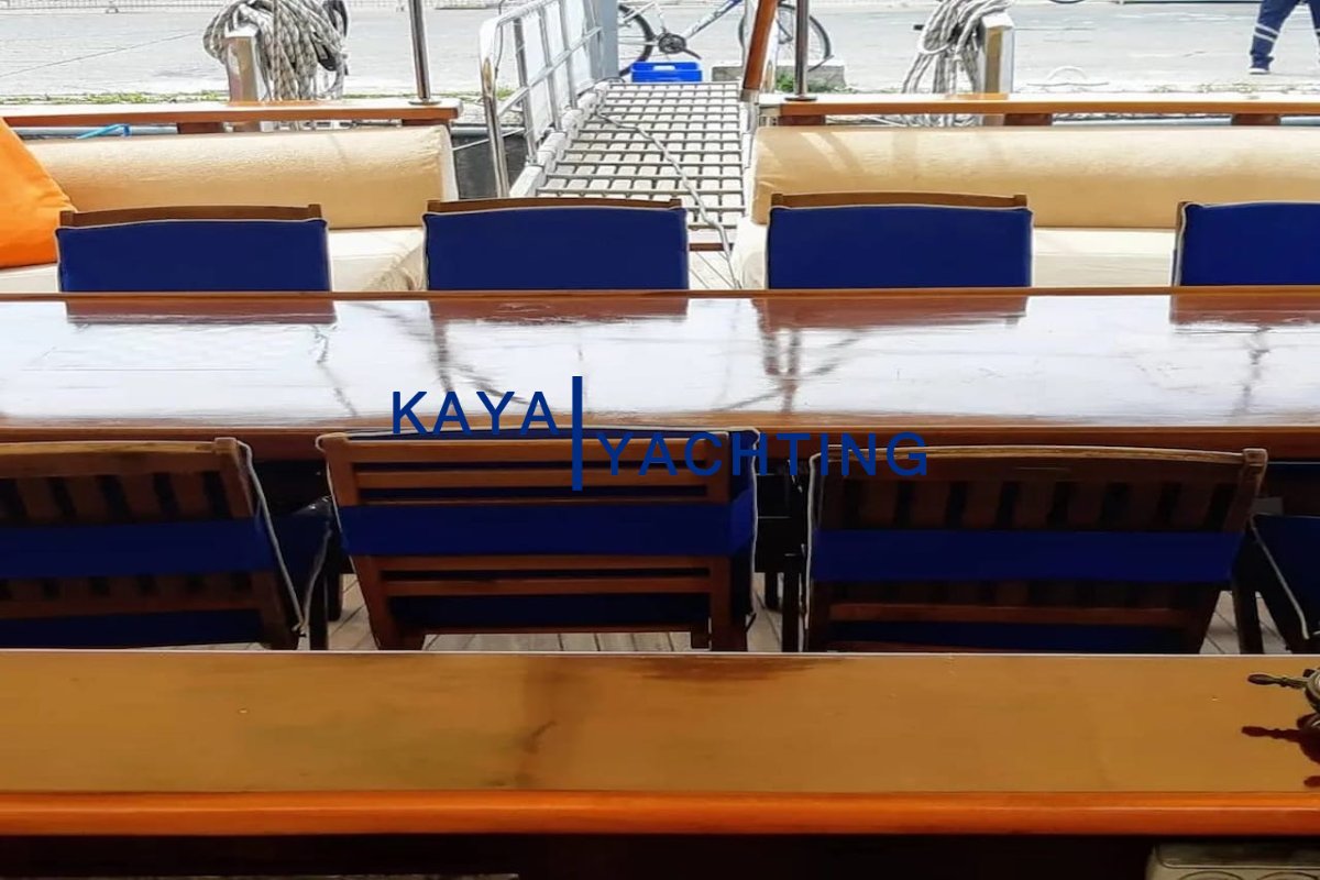 Arka Güverte (Havuzluk): Teknenin kalbi burasıdır. Geniş bir yemek masası ve konforlu bir dinlenme alanı (bumba) bulunur. Gün doğarken yapılan kahvaltılar ve gün batımına karşı yenen uzun akşam yemekleri, bu alanda unutulmaz anılara dönüşür.