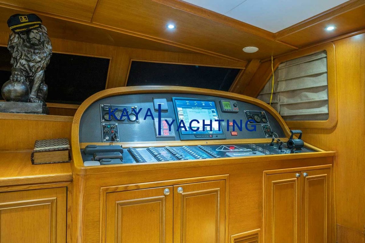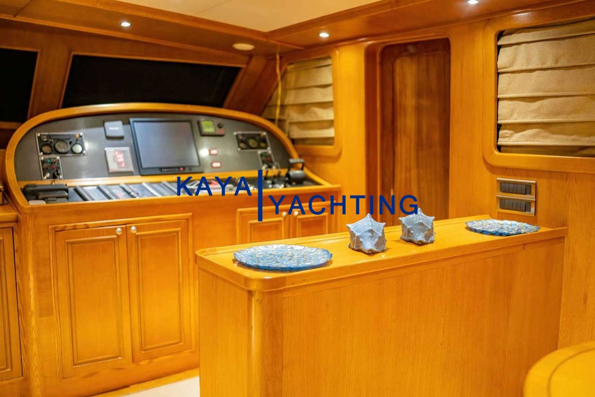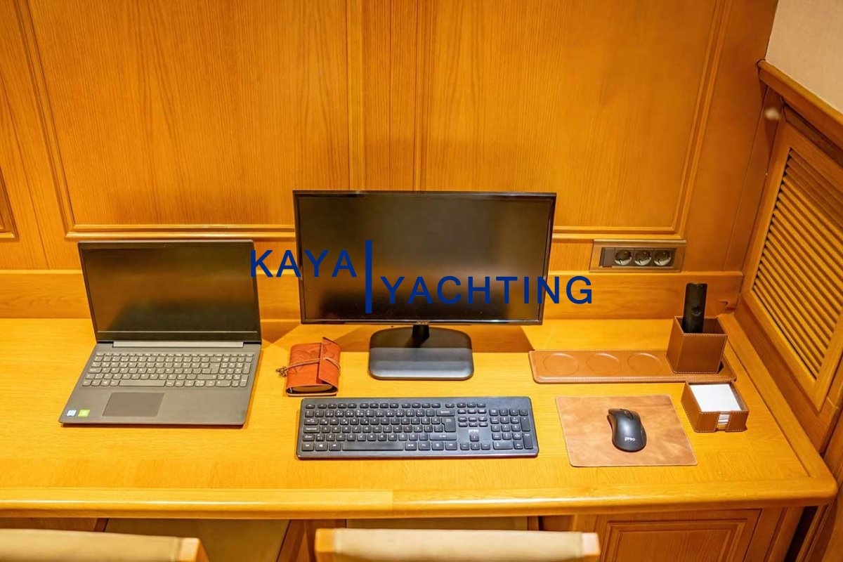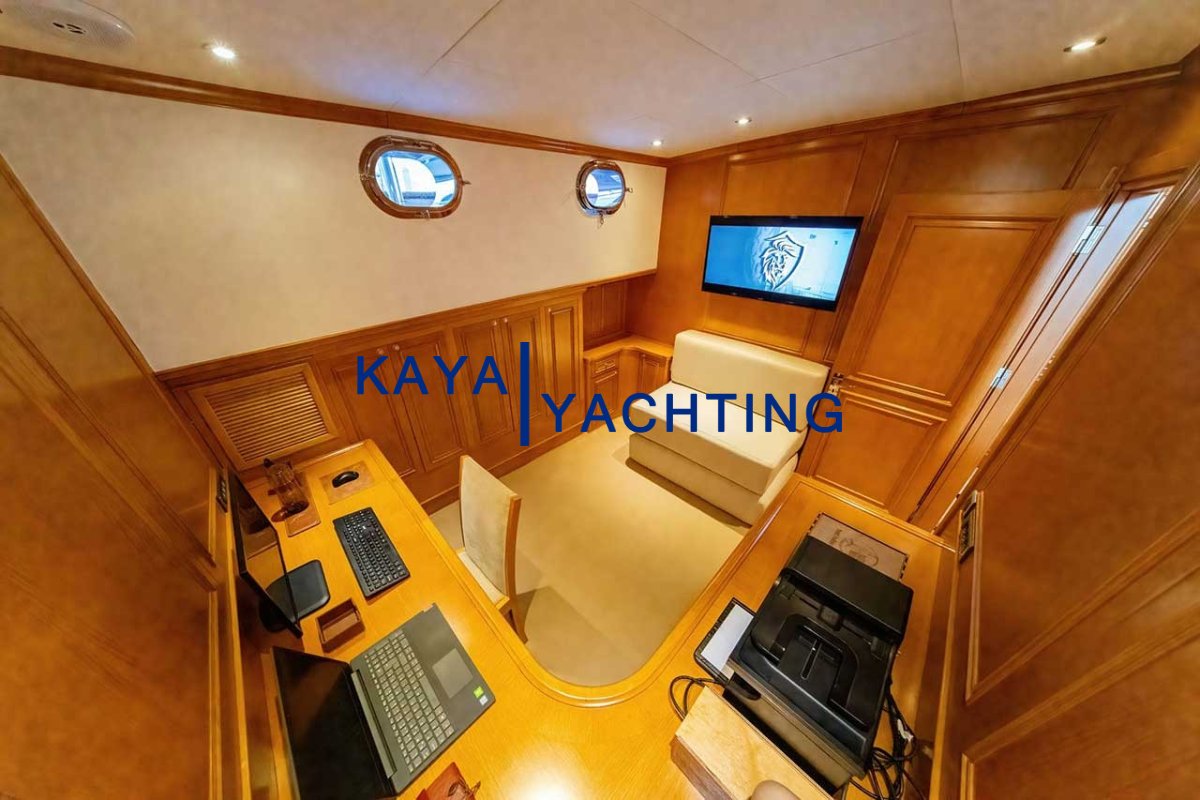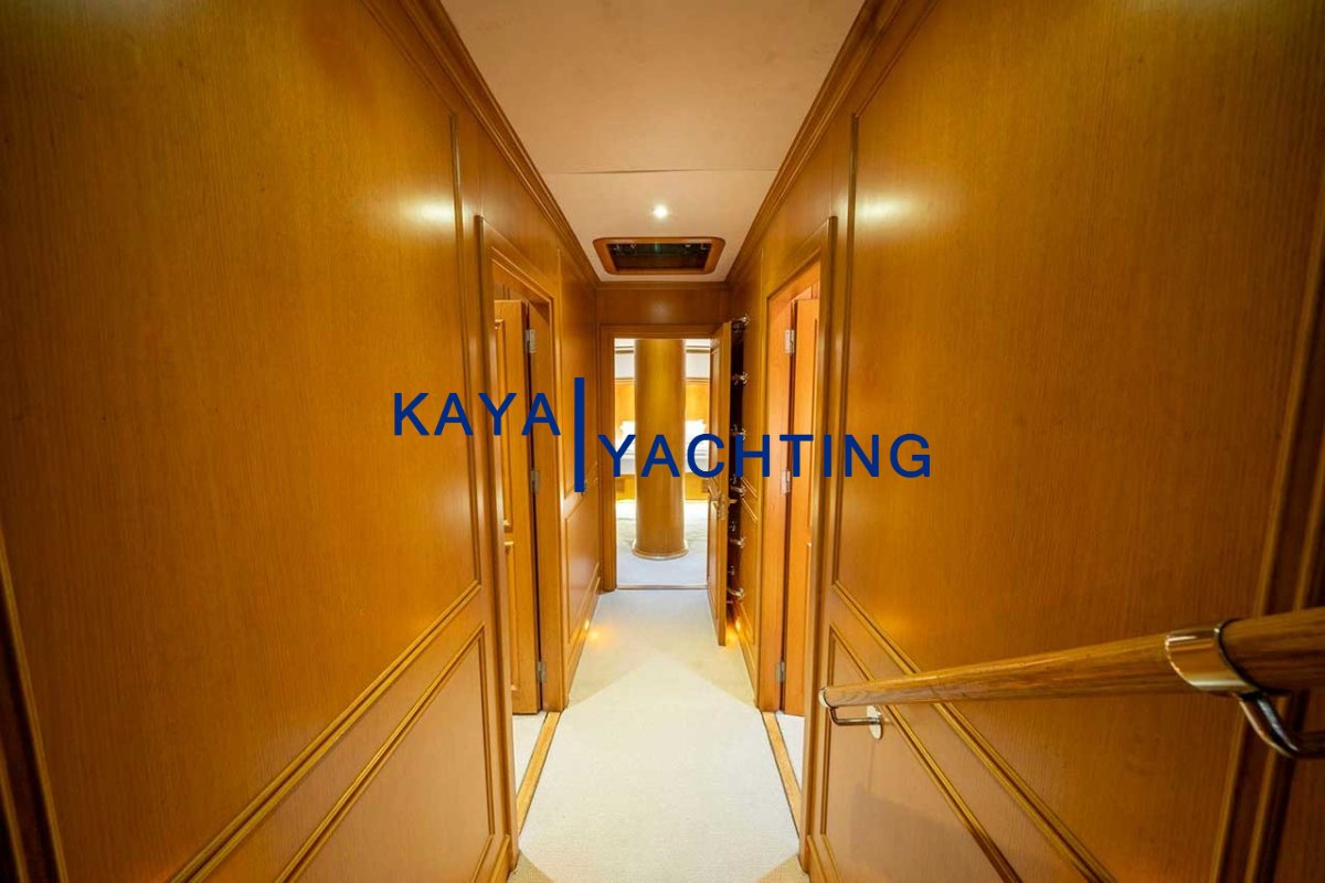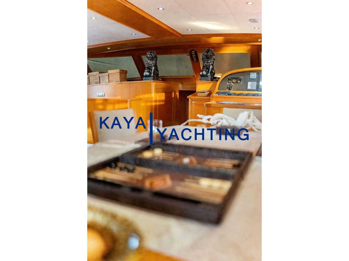 Teknenin salonu, konforlu oturma grupları, LCD TV, DVD oynatıcı ve stereo müzik sistemi ile donatılmış olup, akşamları sevdiklerinizle keyifli vakit geçirmeniz için idealdir. Ancak Babylon'un asıl cazibesi dış güvertelerindedir: