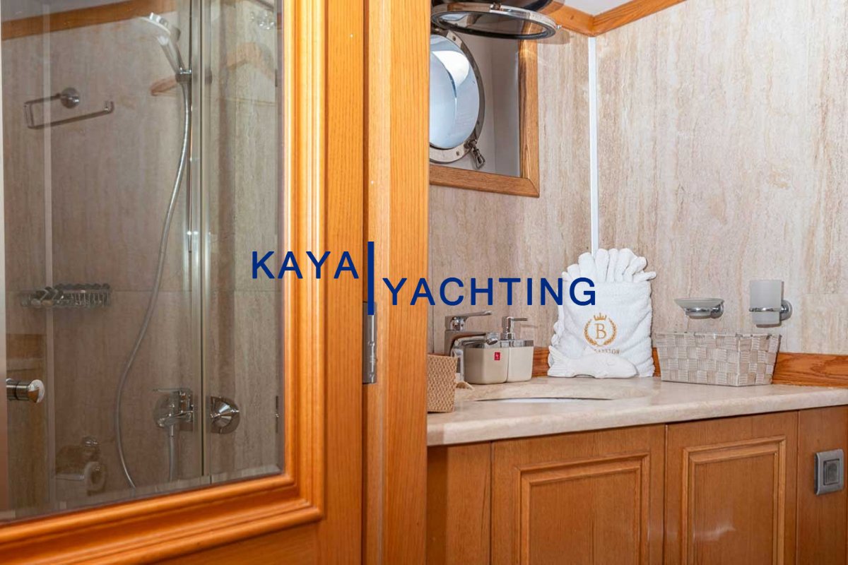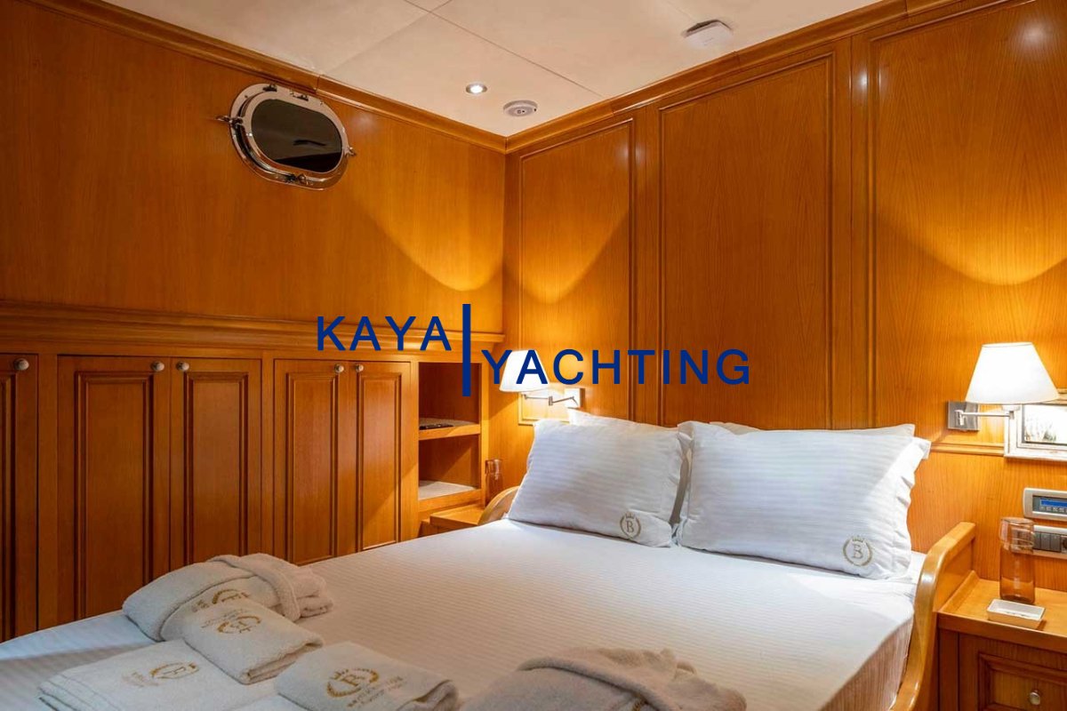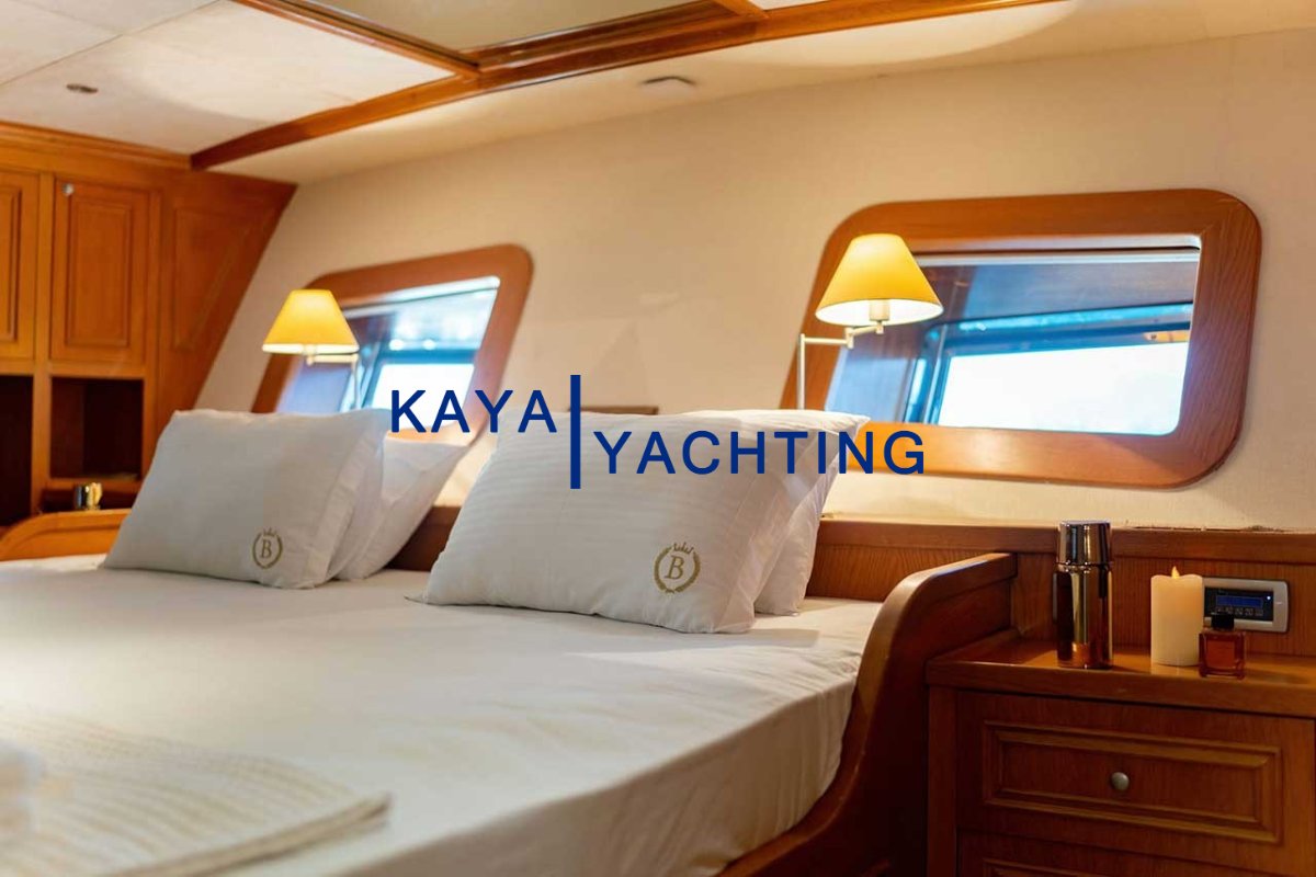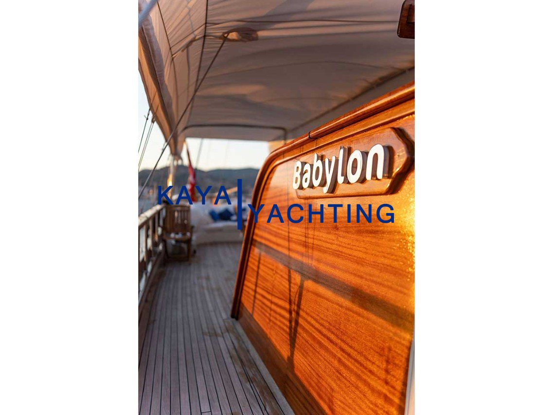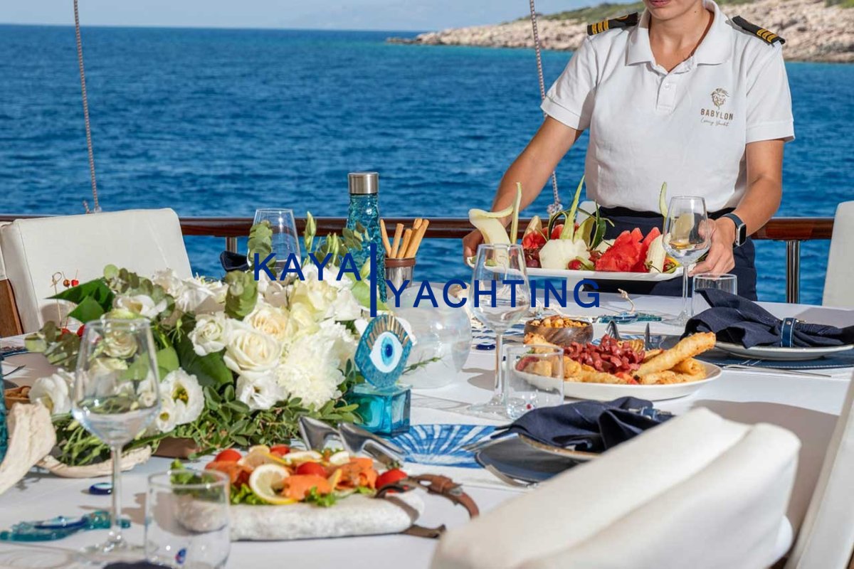 Babylon, 15 deniz mili hıza ulaşabilen güçlü yapısıyla sizi bir destinasyondan diğerine konforla taşır. 6 kişilik profesyonel ve deneyimli mürettebatımız, misafirlerin konforu için ayrılmış özel yaşam alanlarında konaklayarak, size 7/24 kesintisiz ancak mahremiyetinize saygılı bir hizmet sunar. Bodrum’un hareketli gecelerinden Marmaris’in yeşil koylarına, Fethiye’nin tarih kokan sularından Göcek’in sakin limanlarına kadar tüm popüler rotalarda hizmetinizdeyiz.