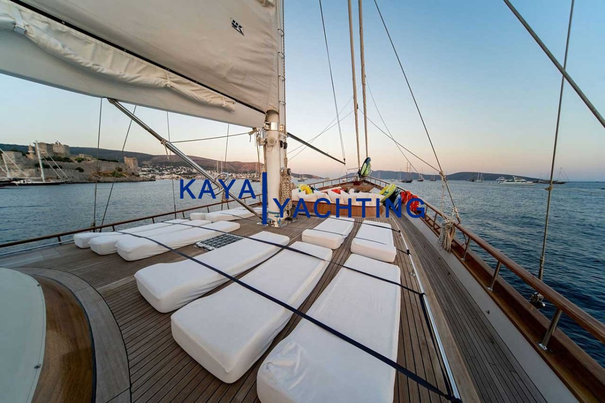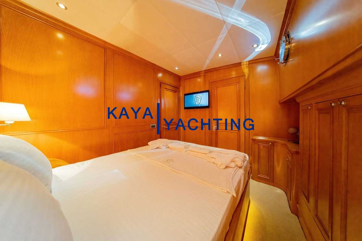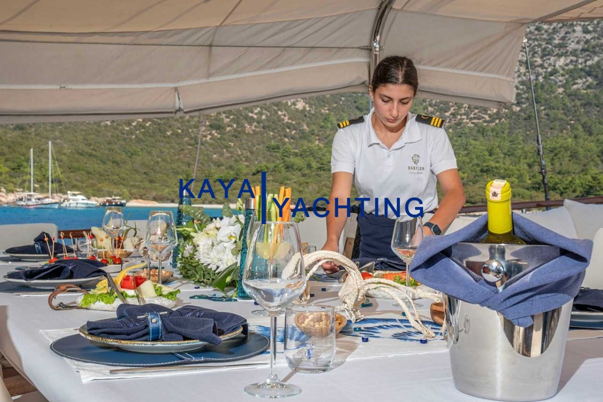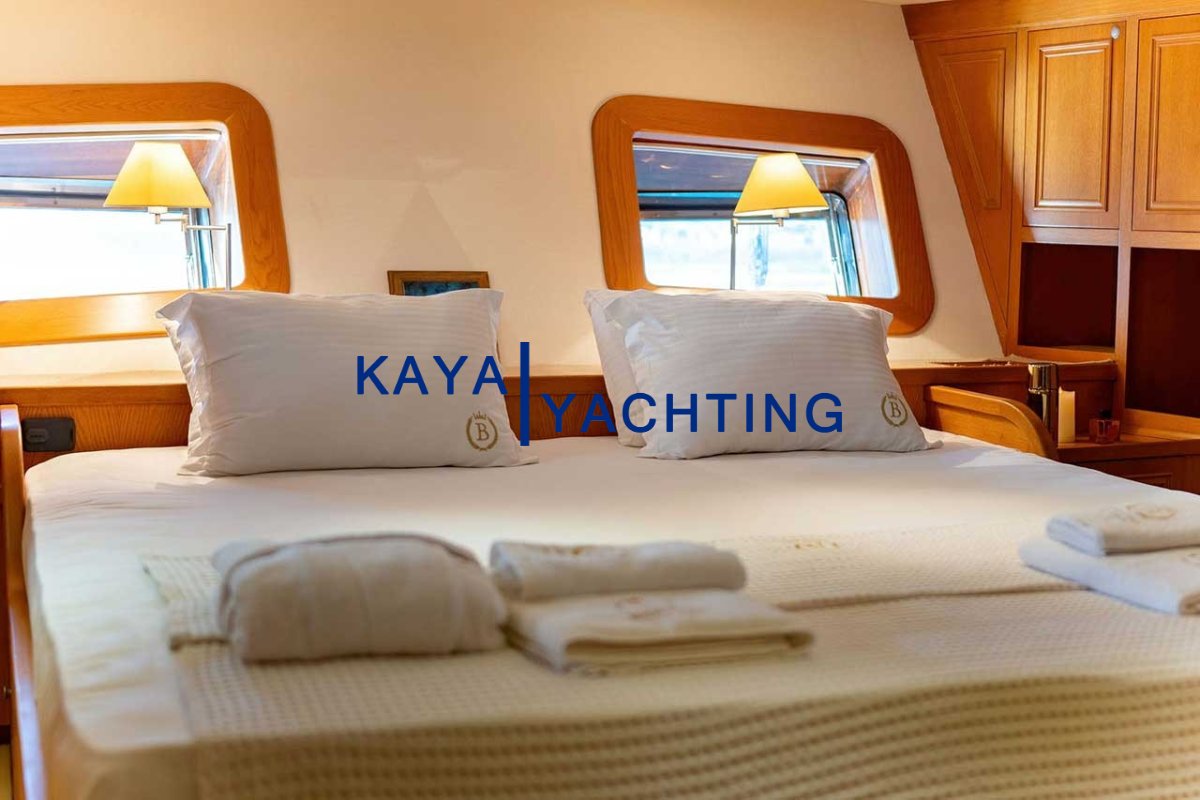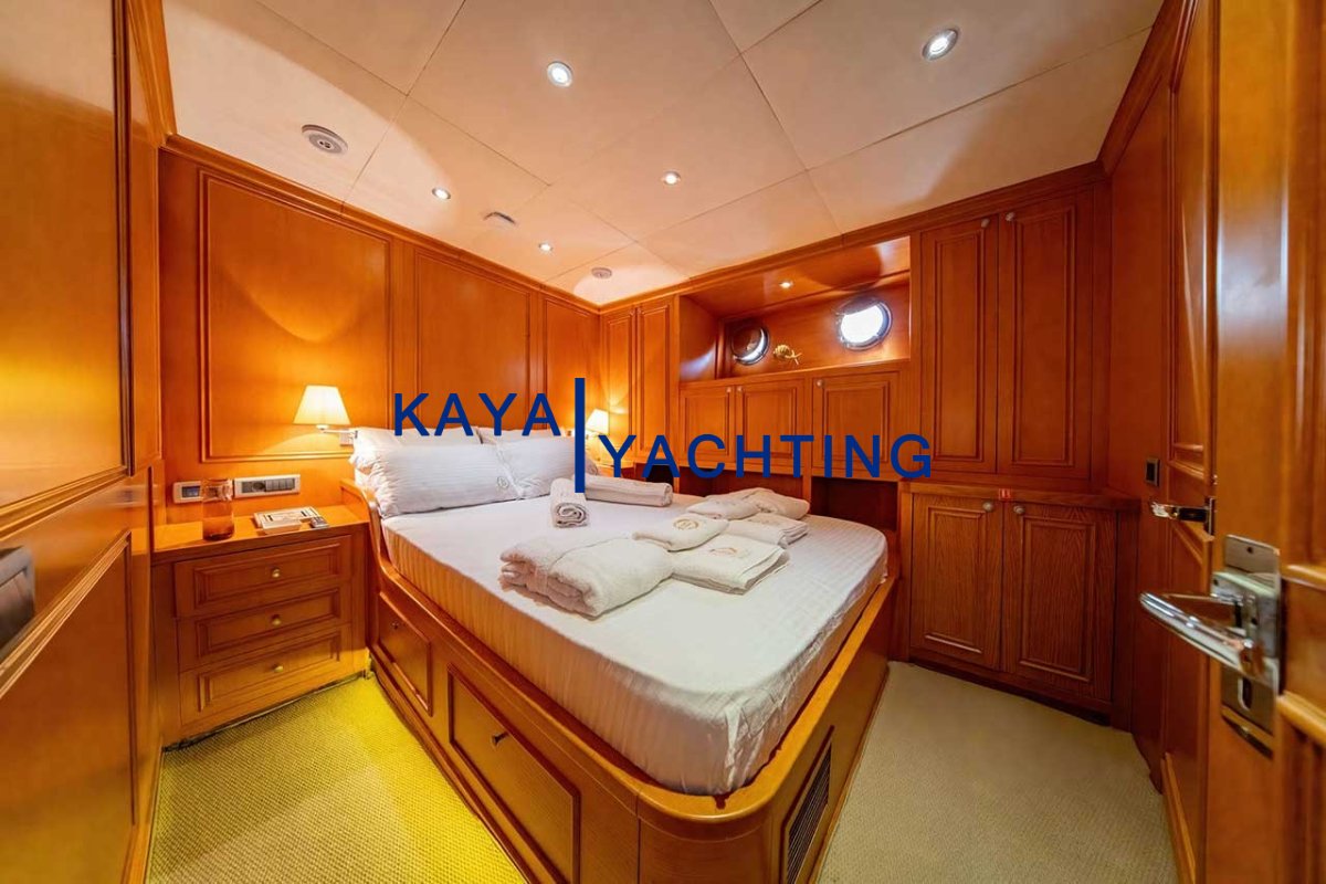 Babylon, 15 deniz mili hıza ulaşabilen güçlü yapısıyla sizi bir destinasyondan diğerine konforla taşır. 6 kişilik profesyonel ve deneyimli mürettebatımız, misafirlerin konforu için ayrılmış özel yaşam alanlarında konaklayarak, size 7/24 kesintisiz ancak mahremiyetinize saygılı bir hizmet sunar. Bodrum’un hareketli gecelerinden Marmaris’in yeşil koylarına, Fethiye’nin tarih kokan sularından Göcek’in sakin limanlarına kadar tüm popüler rotalarda hizmetinizdeyiz.