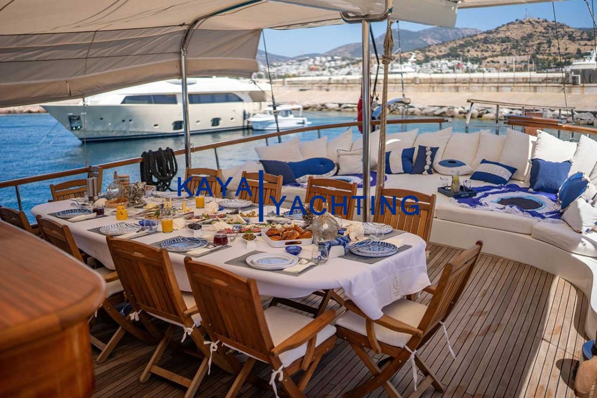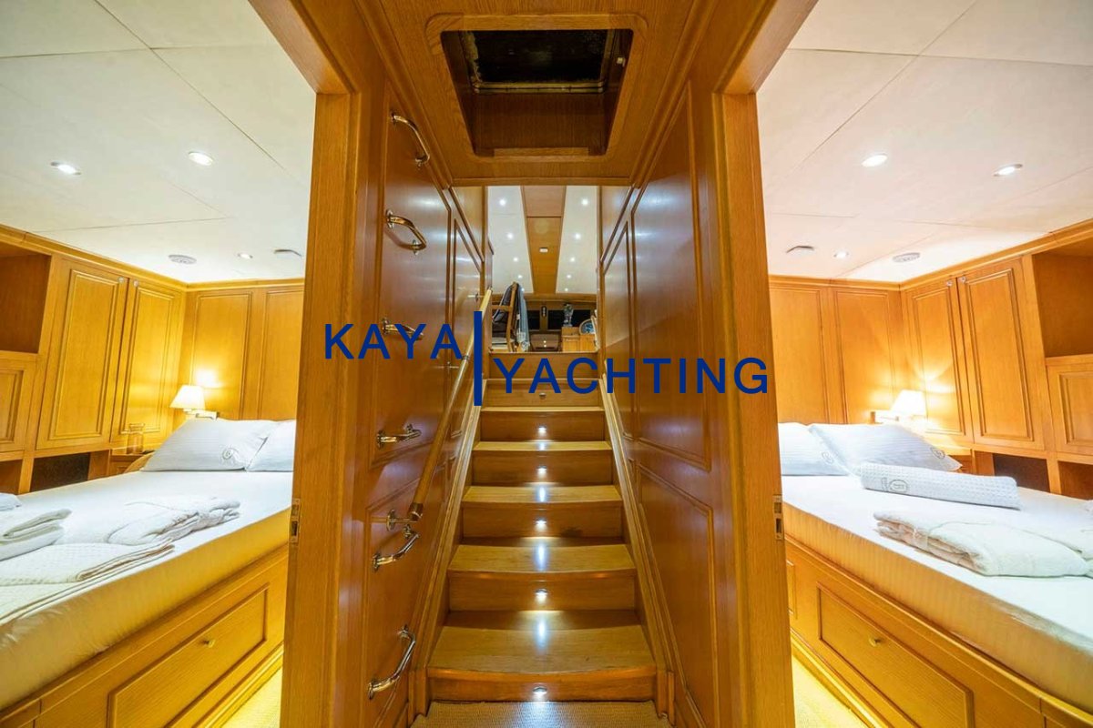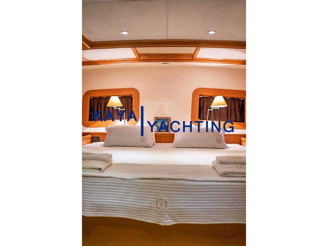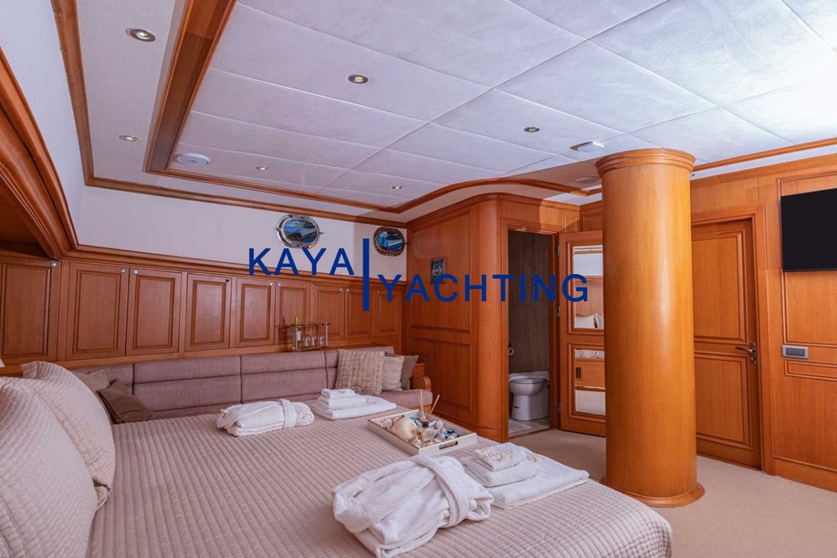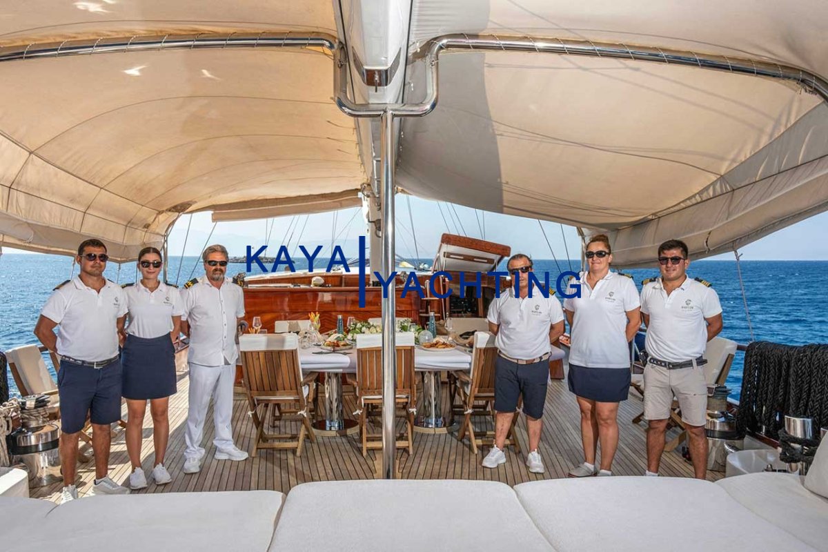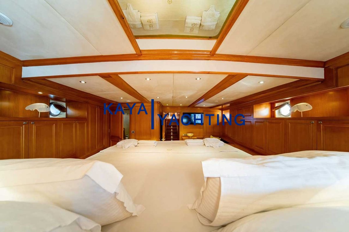 Babylon, 15 deniz mili hıza ulaşabilen güçlü yapısıyla sizi bir destinasyondan diğerine konforla taşır. 6 kişilik profesyonel ve deneyimli mürettebatımız, misafirlerin konforu için ayrılmış özel yaşam alanlarında konaklayarak, size 7/24 kesintisiz ancak mahremiyetinize saygılı bir hizmet sunar. Bodrum’un hareketli gecelerinden Marmaris’in yeşil koylarına, Fethiye’nin tarih kokan sularından Göcek’in sakin limanlarına kadar tüm popüler rotalarda hizmetinizdeyiz.