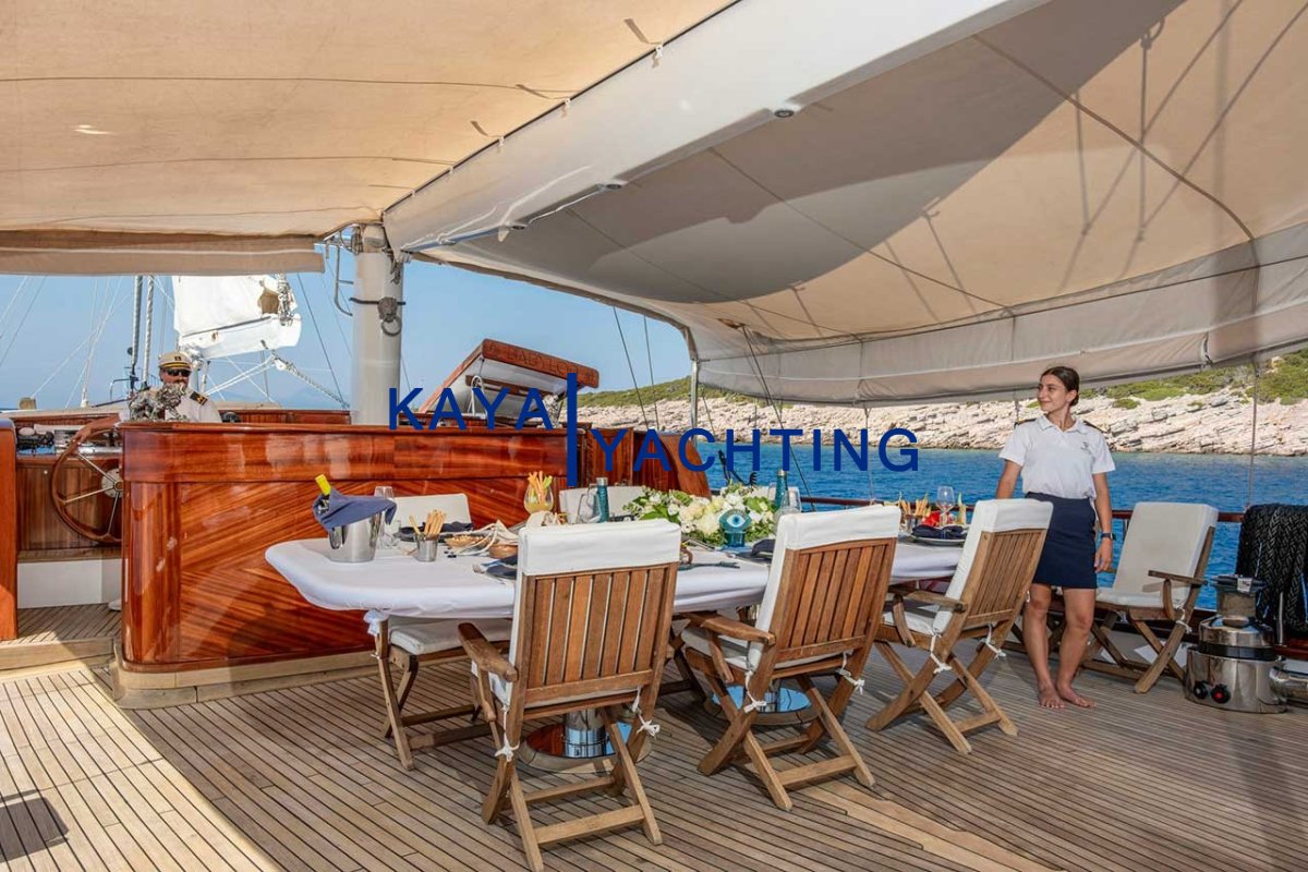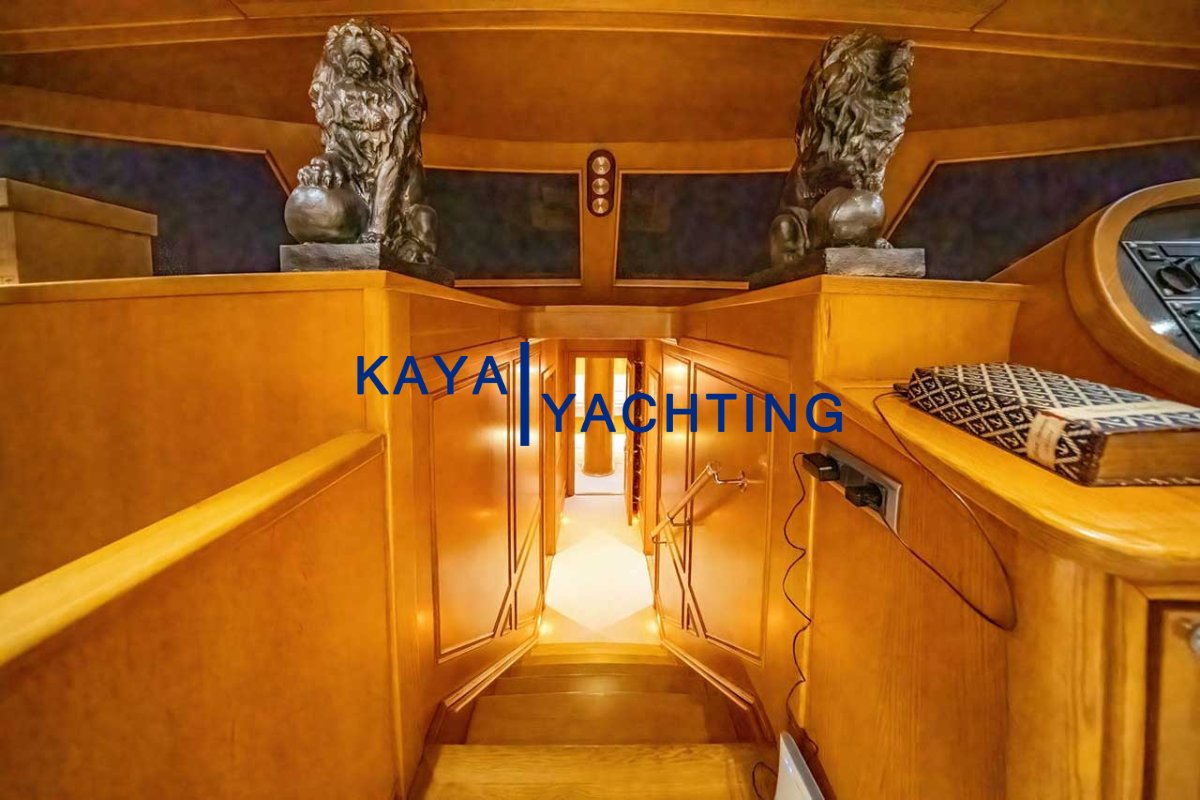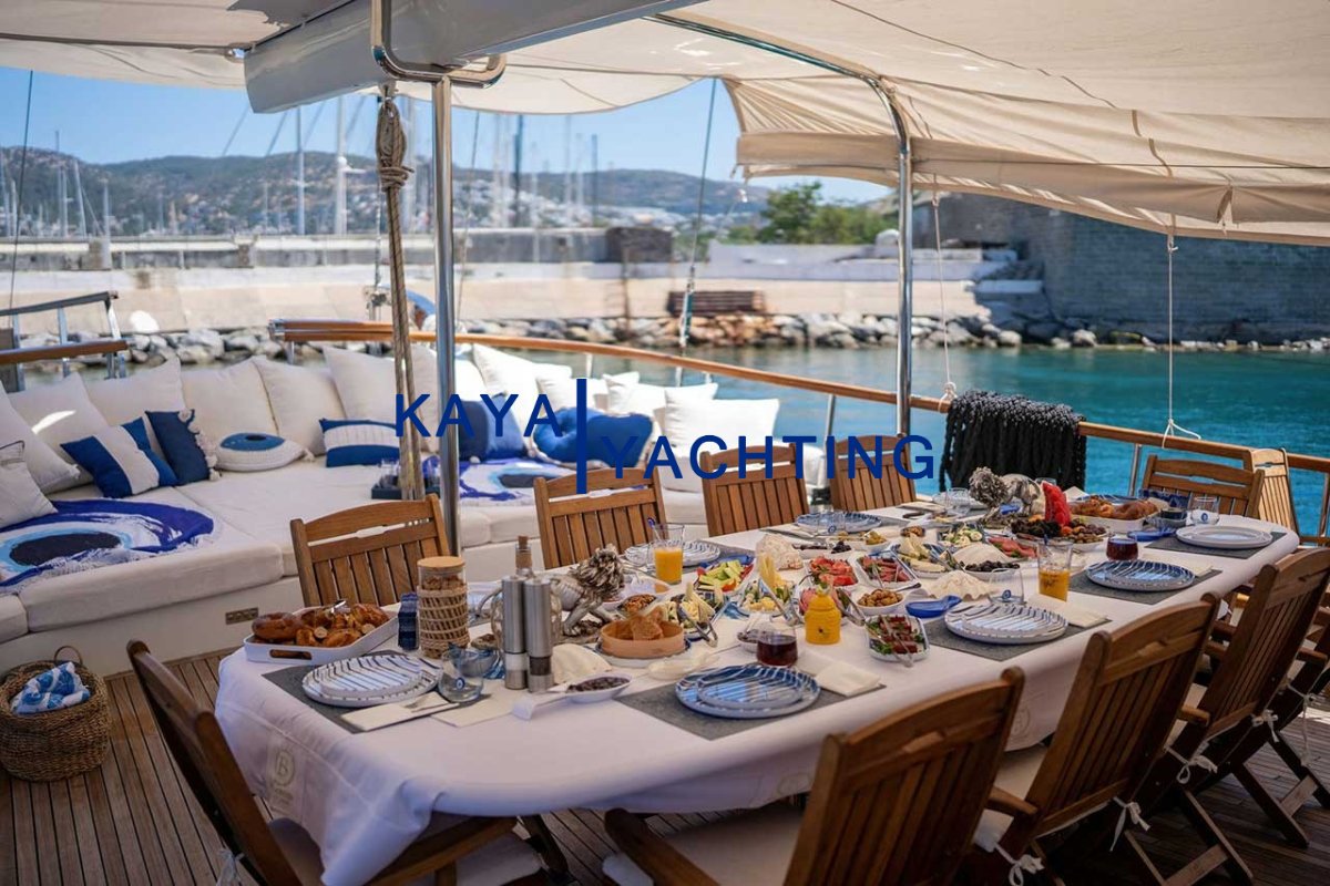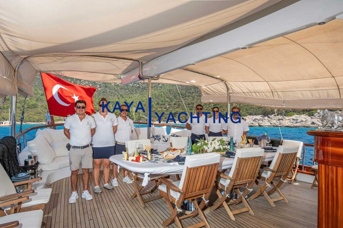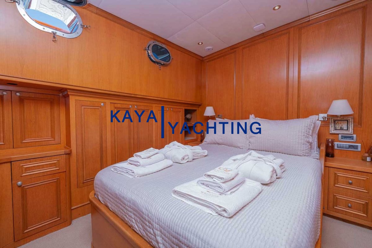 Babylon, 15 deniz mili hıza ulaşabilen güçlü yapısıyla sizi bir destinasyondan diğerine konforla taşır. 6 kişilik profesyonel ve deneyimli mürettebatımız, misafirlerin konforu için ayrılmış özel yaşam alanlarında konaklayarak, size 7/24 kesintisiz ancak mahremiyetinize saygılı bir hizmet sunar. Bodrum’un hareketli gecelerinden Marmaris’in yeşil koylarına, Fethiye’nin tarih kokan sularından Göcek’in sakin limanlarına kadar tüm popüler rotalarda hizmetinizdeyiz.