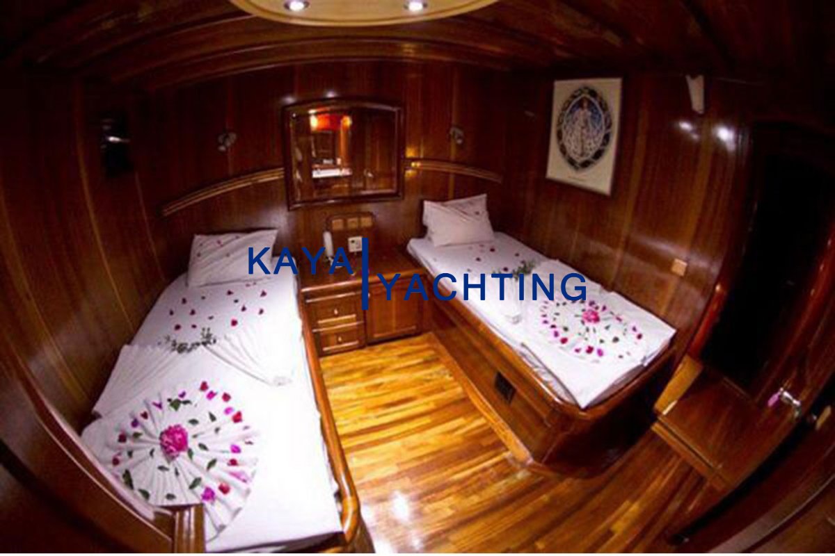 7 Double Kabin: Teknemiz, tamamen çift kişilik yataklarla donatılmış 7 adet konforlu kabinden oluşur. Bu eşit kabin dağılımı, grup içindeki konaklama düzenlemesini son derece kolaylaştırır.