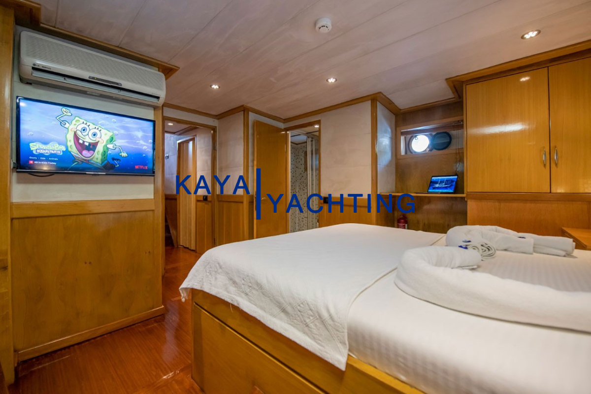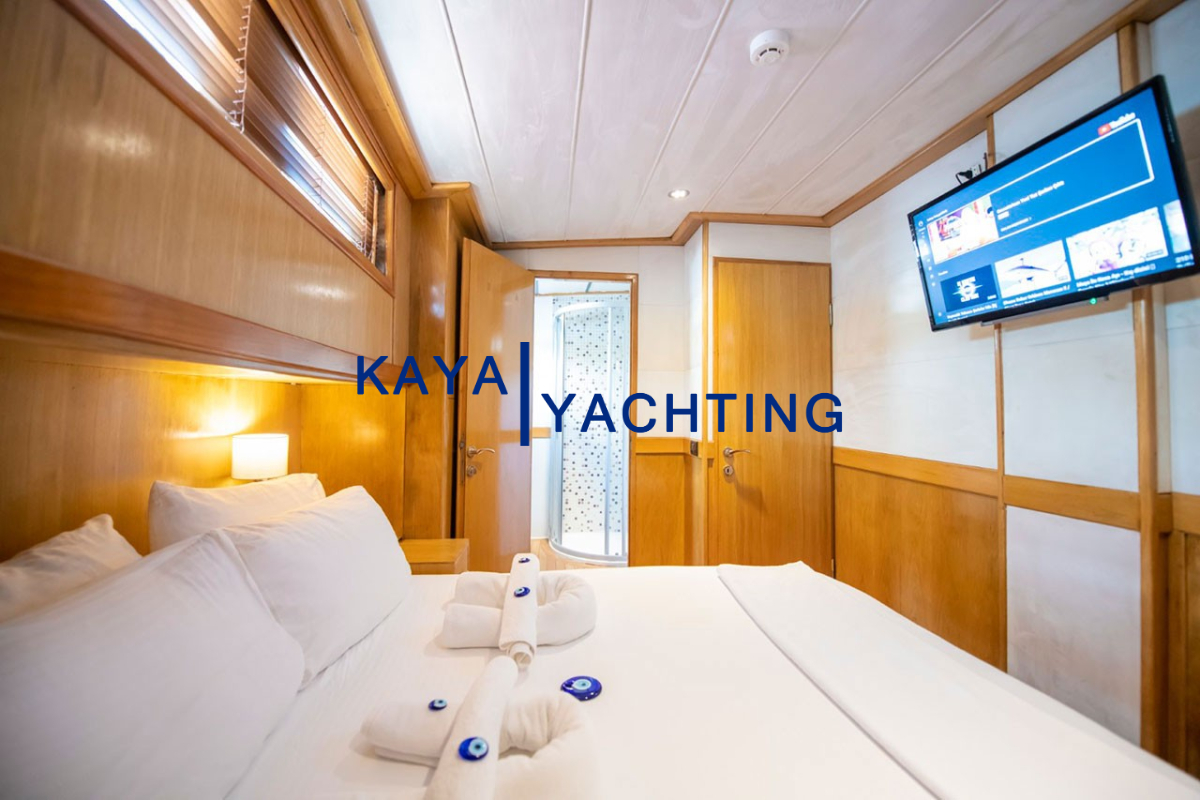 1 Master Kabin (22 m²): Geniş ve ferah yapısıyla size evinizin konforunu aratmayacak. Özel banyo, LED TV ve 24 saat klima ile donatılmış bu kabin, mavi yolculuğunuzda size özel bir yaşam alanı sunar.