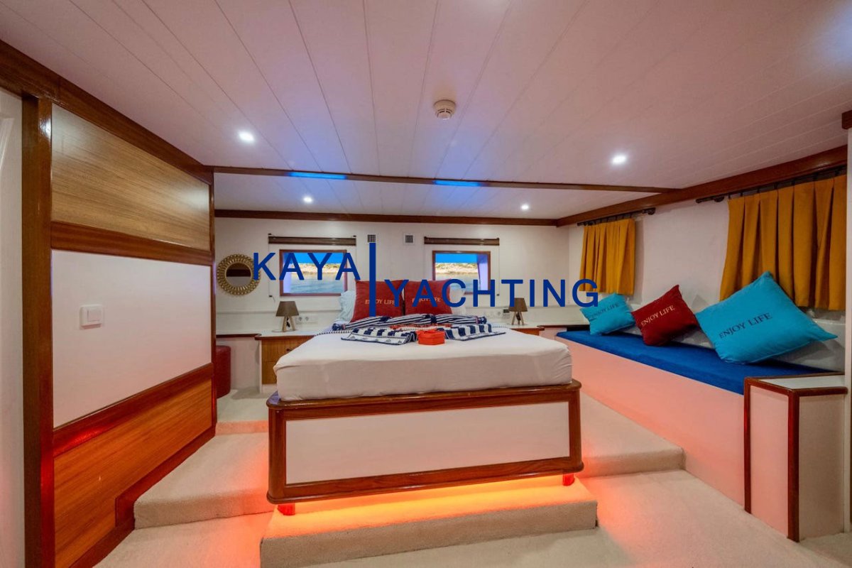 2 Master Kabin: 24 metrelik bir gulette nadir rastlanan bu özellik, iki çiftin veya iki ailenin de üst düzey konforu deneyimlemesine olanak tanır. Geniş, aydınlık ve lüks detaylarla donatılmıştır.