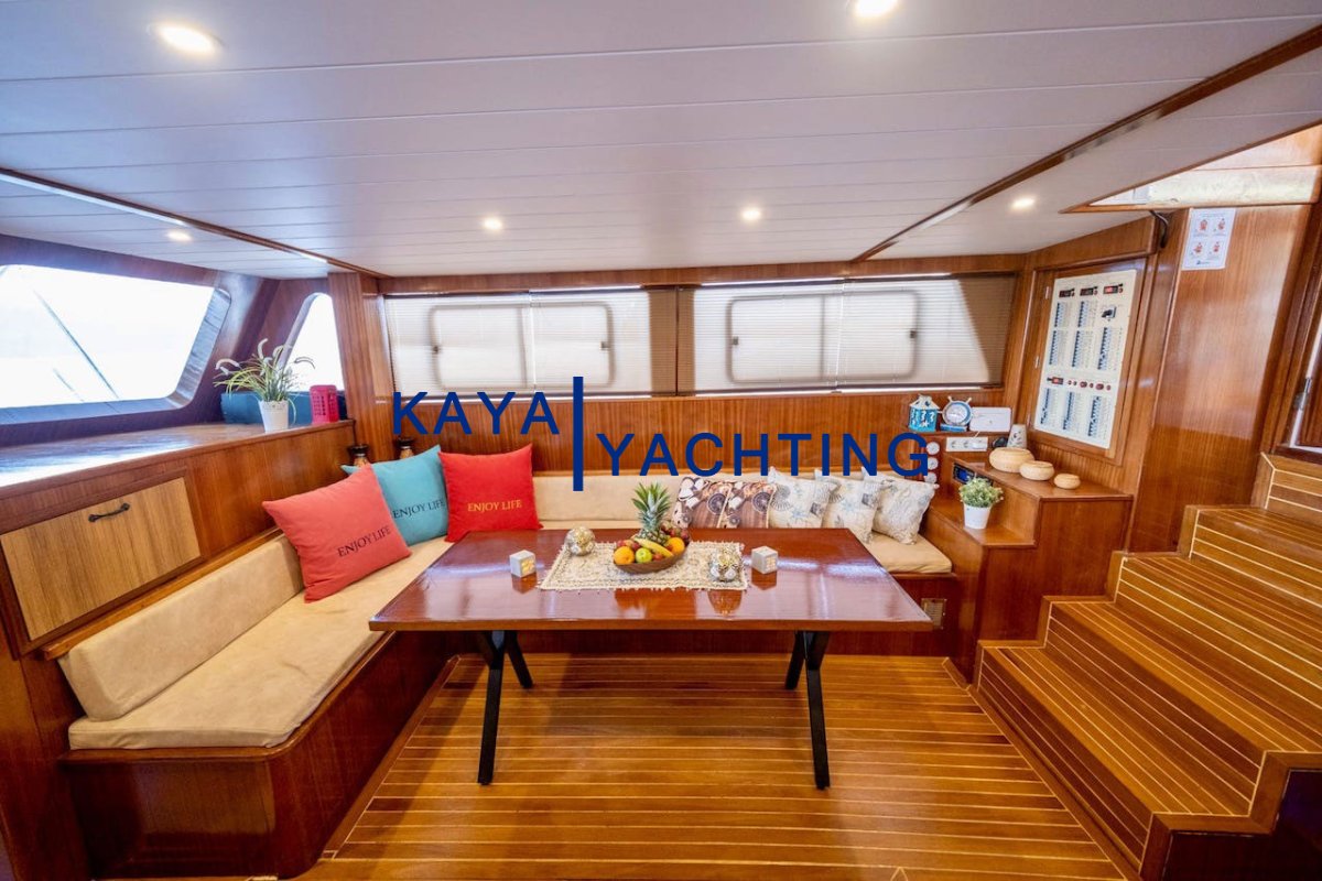 Enjoy life Gulet, modern yatçılık trendleri göz önünde bulundurularak tasarlanmıştır. 24 metre uzunluğu ve 7 metre eni, teknede olağanüstü bir ferahlık ve denge sağlarken, 2019 yapımı olması, en yeni teknik ve estetik standartlara sahip olduğunu garantiler. Göcek Limanı'ndan hareketle, size özel bir yüzme havuzuna benzeyen Göcek koylarında unutulmaz bir deneyim yaşatmak için her detayı düşünülmüştür.