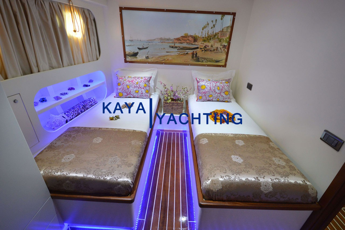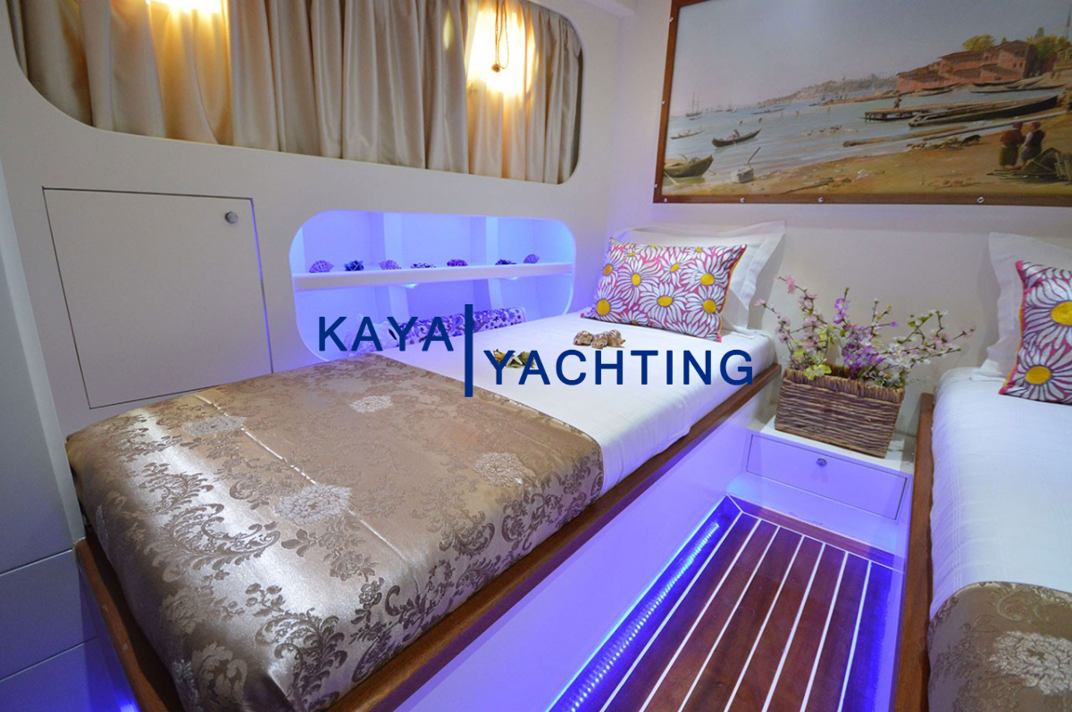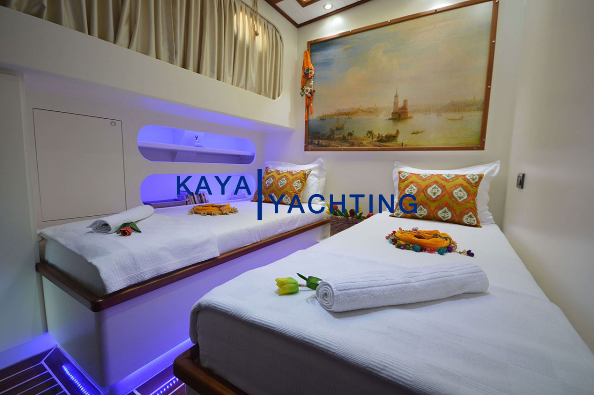 Gül Sultan, 12 kişiye kadar misafir ağırlama kapasitesiyle geniş ve ferah yaşam alanları sunar. Toplamda 6 lüks kabini bulunan guletimizde, konforunuz en üst düzeyde tutulmuştur: