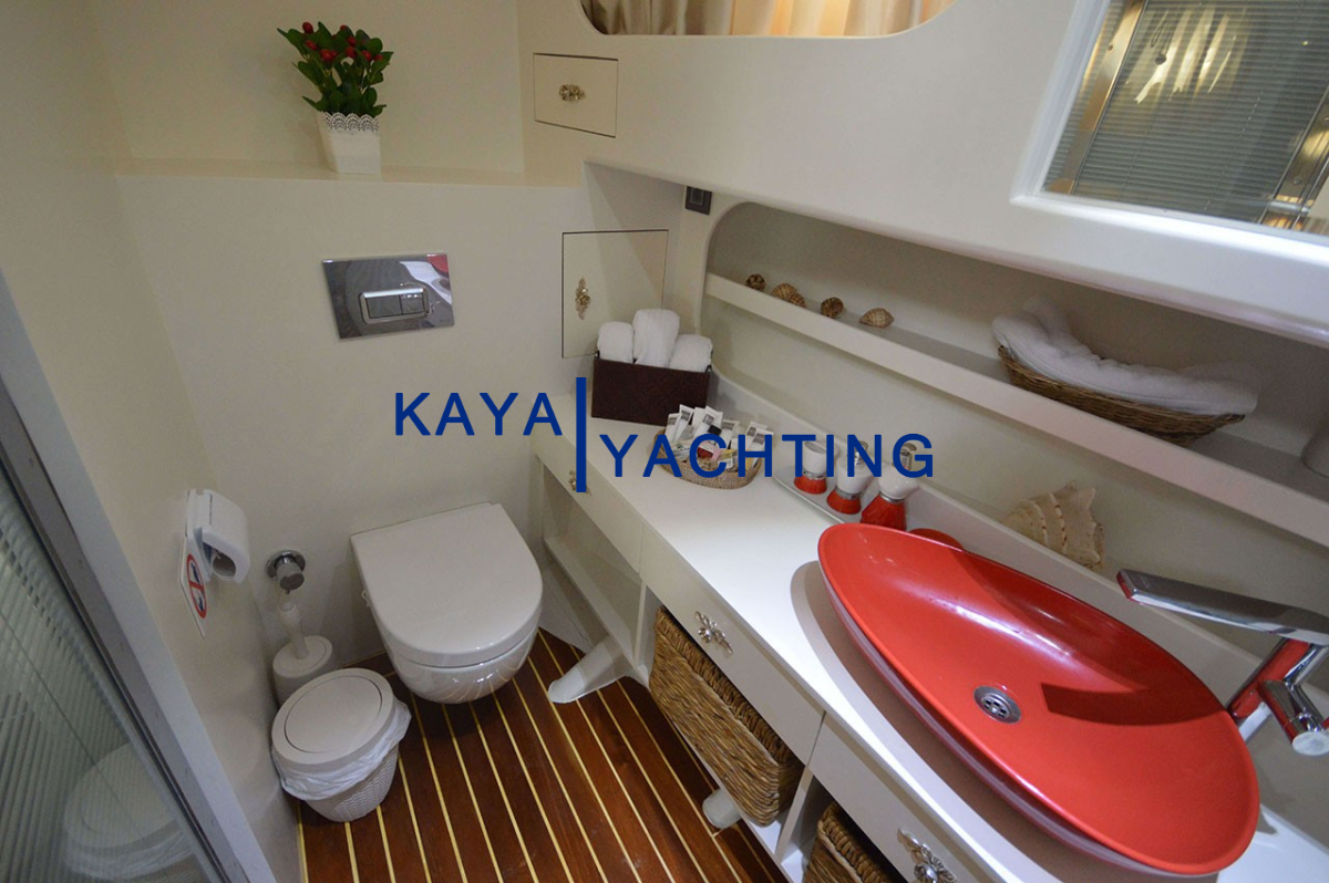 Ön Güverte: Geniş ve ferah ön güverte, misafirlere bolca alan sunar. Burada güneşin tadını çıkarabilir, yoga yapabilir veya sadece denizin esintisiyle dinlenebilirsiniz. Geniş oturma minderleri ve güneşlenme alanları, tüm gün boyunca dışarıda olmanın keyfini çıkarmanızı sağlar.