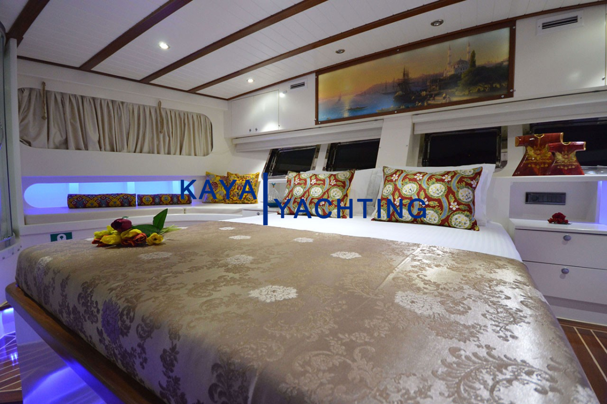 Gül Sultan'da, her anınızda denizin ve doğanın tadını çıkarırken, aynı zamanda lüksün ve konforun ayrıcalıklarını yaşayacaksınız. Güverte alanları, güneşlenmek, okumak, sohbet etmek veya sadece dalgaların sesini dinlemek için çeşitlilik sunar.