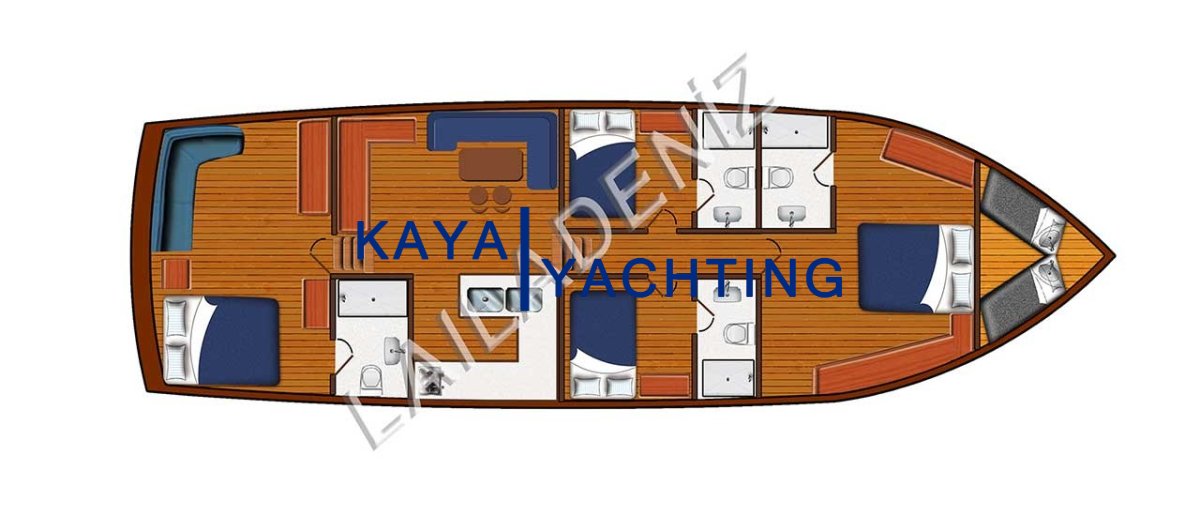 Kabin Dağılımı: 2 Master ve 2 Double kabin ile toplam 8 kişilik konaklama.