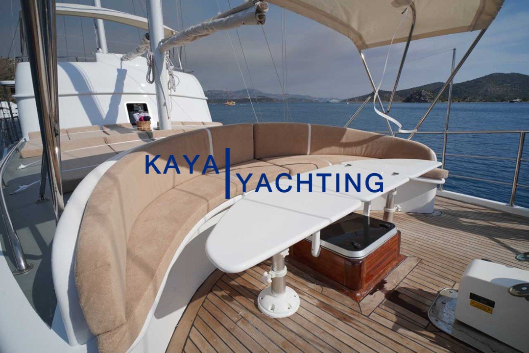 Ön Güverte: Güneşlenmek isteyenler için geniş minderlerin ve gün batımı kokteylleri için keyifli bir oturma grubunun bulunduğu alandır.