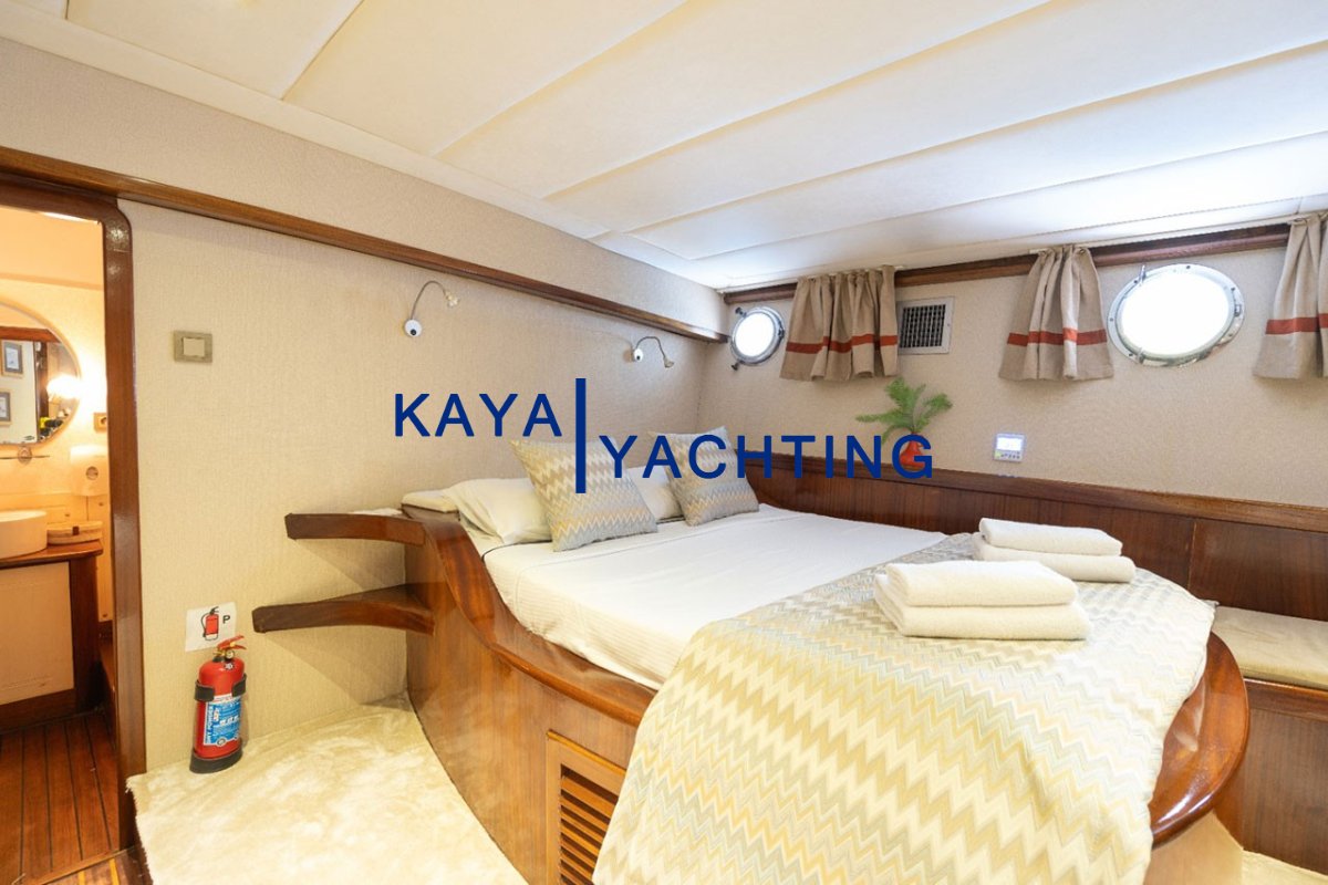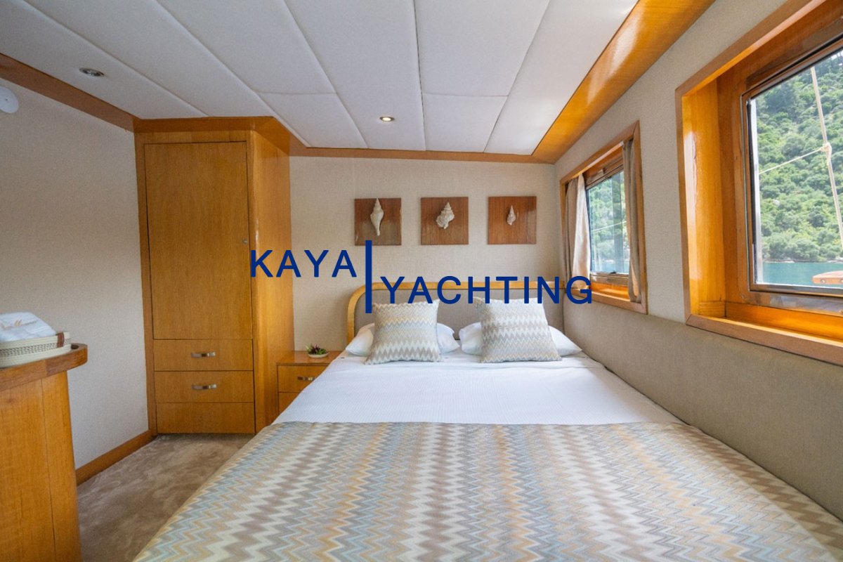 Halı Kaplı Zeminler: Teknemizin en dikkat çeken ve otel konforunu hissettiren özelliklerinden biri, tüm kabinlerin 1. sınıf halı ile kaplı olmasıdır. Bu detay, kabin içindeki sıcaklığı ve lüks hissiyatını artırırken, çıplak ayakla dolaşmanın keyfini doruklara çıkarır.