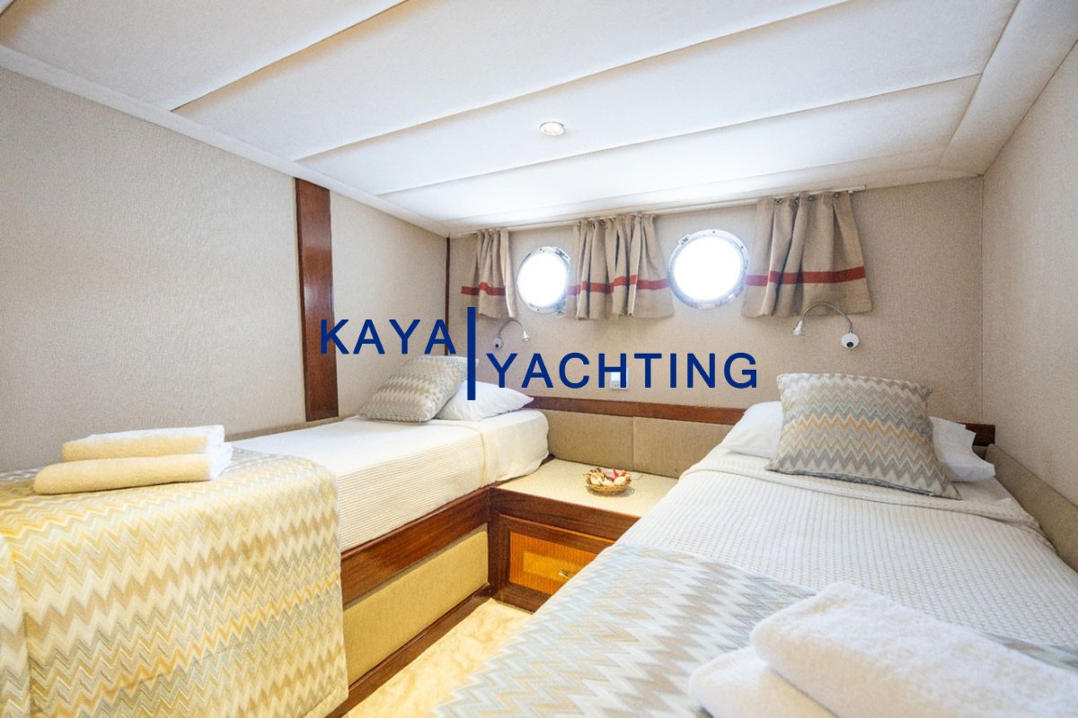 Her kabin; konforlu yataklar, geniş depolama alanları ve lüks banyo donanımları ile misafirlerin rahatı için en ince ayrıntısına kadar düşünülmüştür.