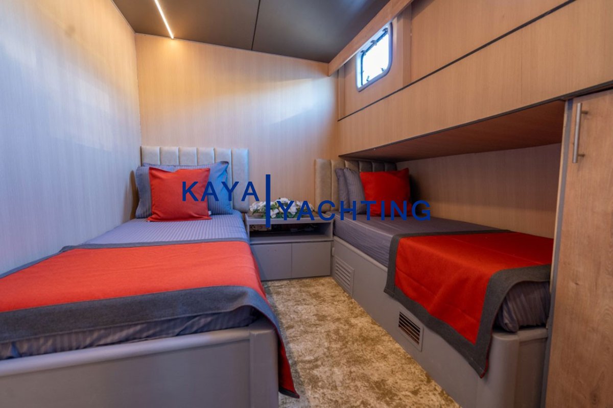 PRINCESS ALİZE, 29 metrelik heybetli gövdesiyle denizde üstün bir stabilite ve ferahlık sunar. 5 kabin ve 10 kişilik butik konaklama kapasitesi, teknenin lüks segmentteki yerini pekiştirir. 29 metrelik bir alanda sadece 10 misafirin ağırlanması, kişi başına düşen yaşam alanını maksimize ederek, misafirlerin hareket özgürlüğünü ve mahremiyetini en üst düzeye çıkarır.