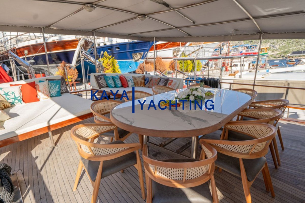 Şık Oturma Grupları: Teknenin çeşitli noktalarında bulunan oturma grupları, gün batımı kokteylleri ve dinlendirici sohbetler için idealdir.