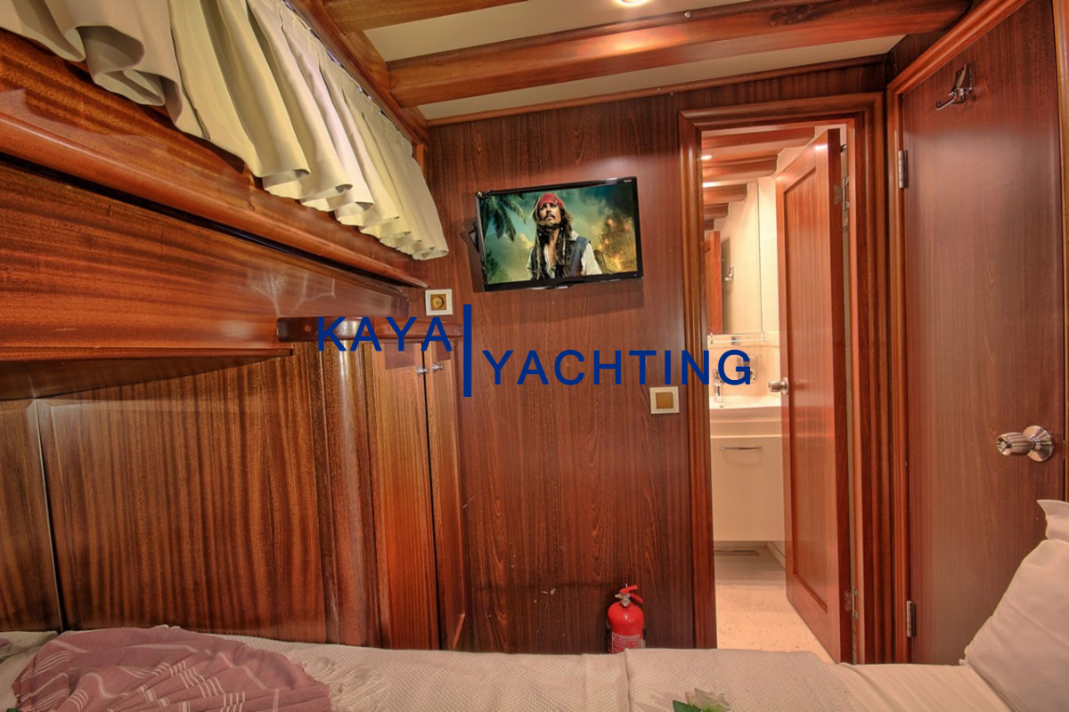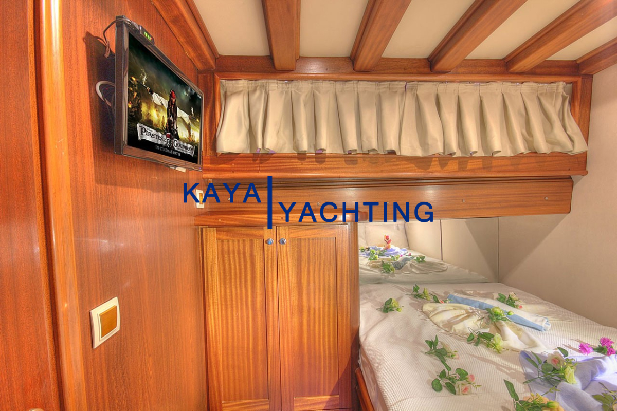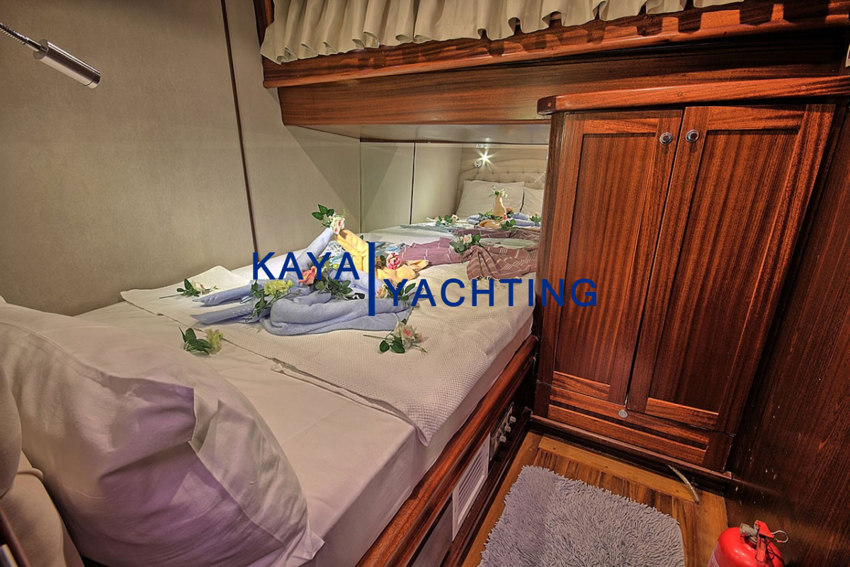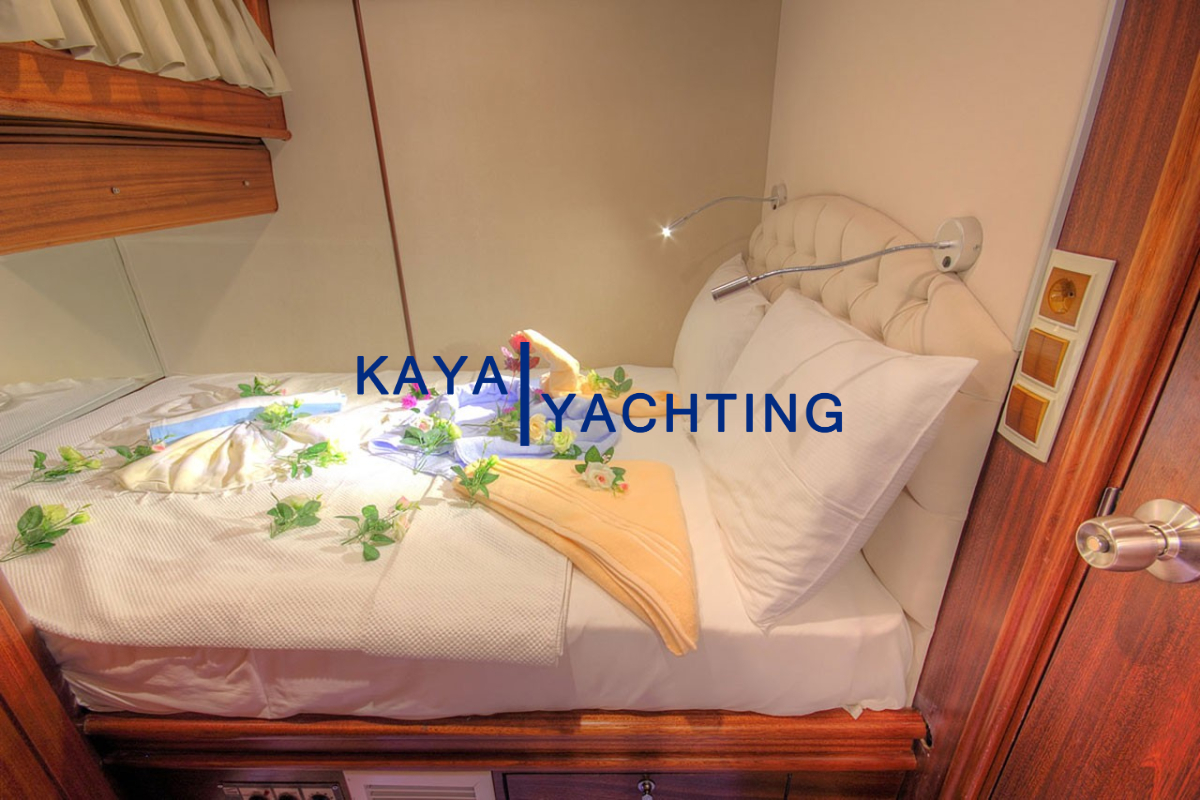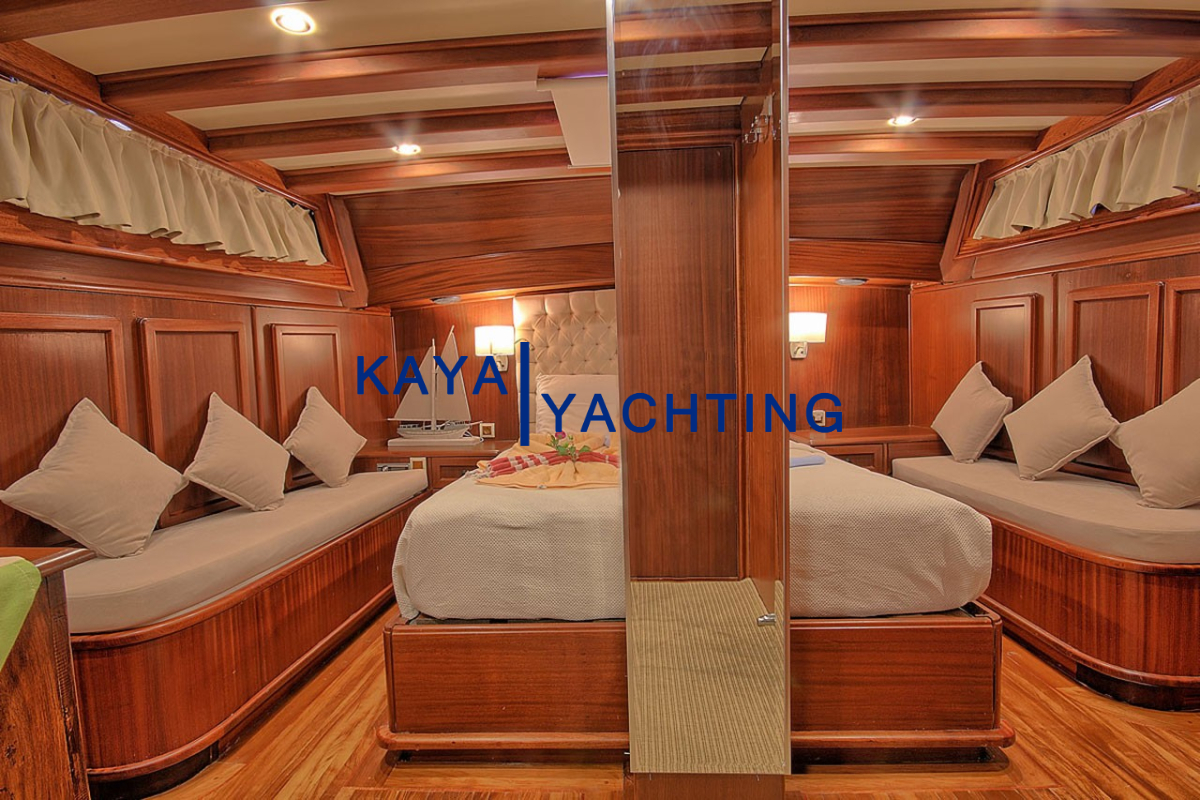 Gulet Romance, misafirlerinin rahatı ve mahremiyeti düşünülerek özel olarak tasarlanmıştır. Teknede bulunan 1 master ve 2 double kabin, toplam 6 kişilik konaklama imkanı sunar. Her bir kabin, uzun mavi yolculuklarda bile konforunuzdan ödün vermemeniz için özenle donatılmıştır. Kabinlerdeki klima sistemi, en sıcak yaz günlerinde dahi serin ve rahat bir uyku deneyimi sunar. Eğlence için her kabinde bulunan televizyonlar sayesinde dilediğiniz zaman keyifli vakit geçirebilirsiniz. Misafir mahremiyetini ve hijyeni ön planda tutan Gulet Romance'de, her kabinde özel ebeveyn banyosu bulunmaktadır. Bu detaylar, tatiliniz boyunca kendinizi özel ve rahat hissetmenizi sağlayacak, otel konforunu denizin ortasına taşıyacaktır. Geniş ve ferah kabinler, kişisel eşyalarınız için yeterli depolama alanı sunarken, şık dekorasyonu ile göz zevkinize de hitap eder.